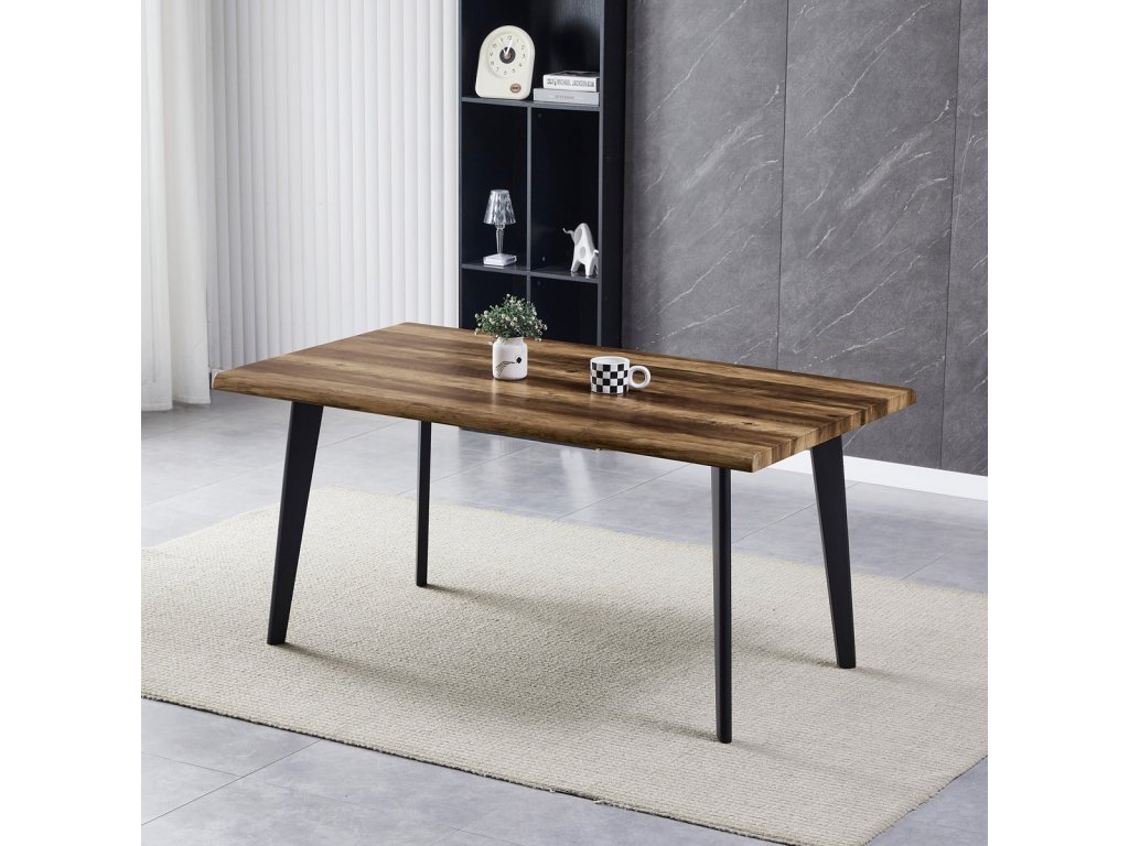 Stůl jídelní, 160x90x75 cm, MDF deska, dekor staré dřevo, kov, černý lak