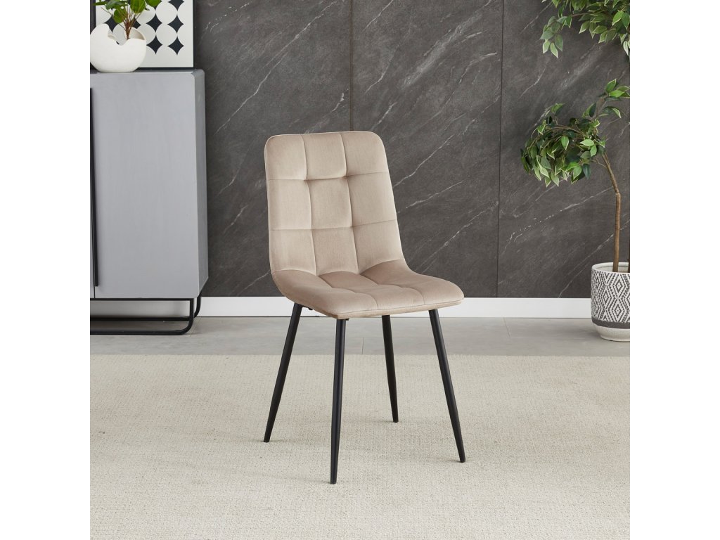 Židle jídelní, krémová sametová látka, nohy černý kov