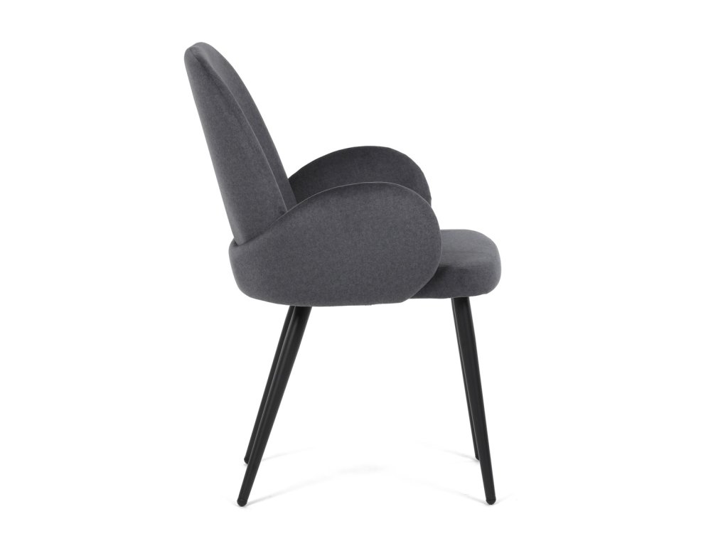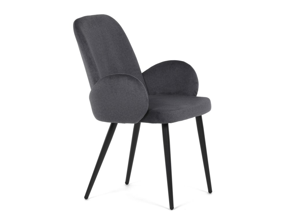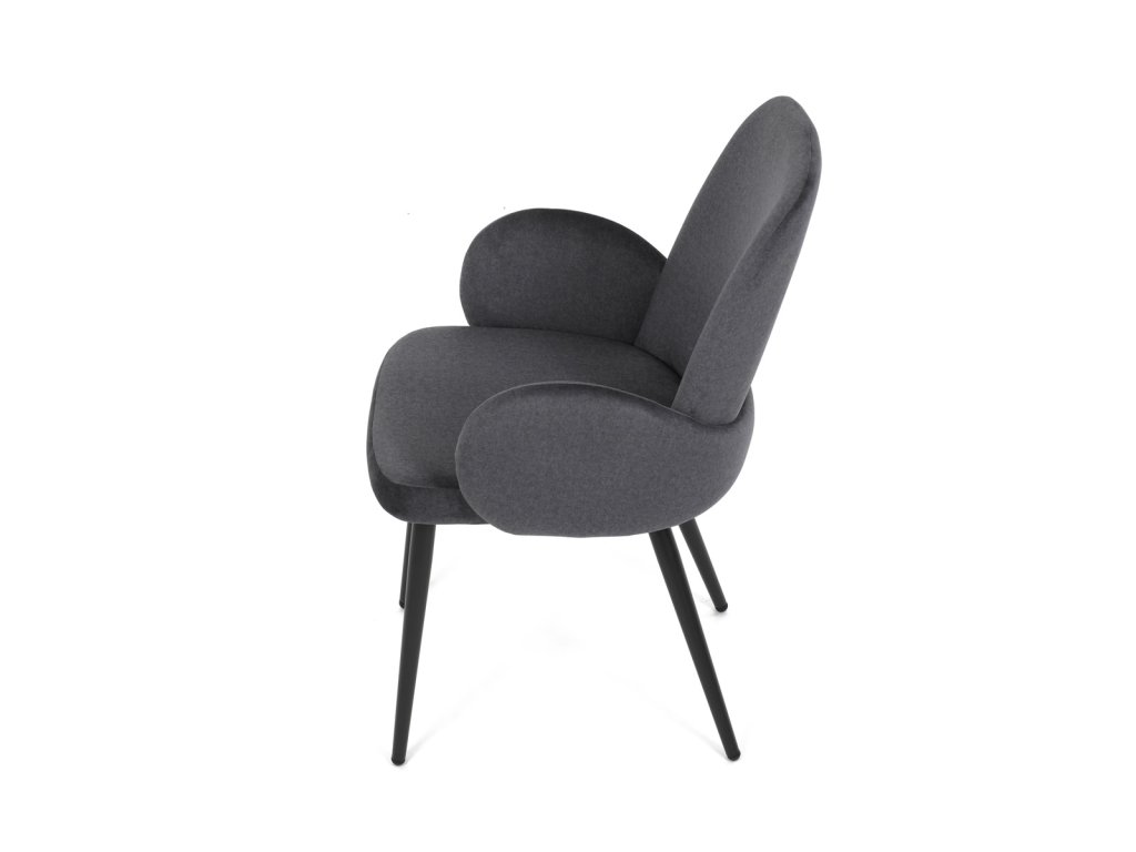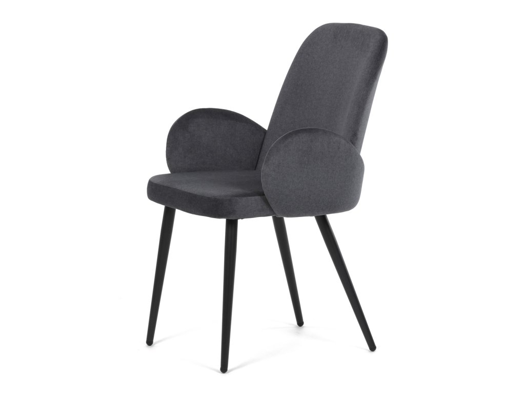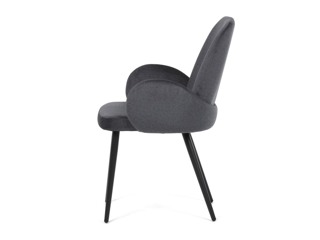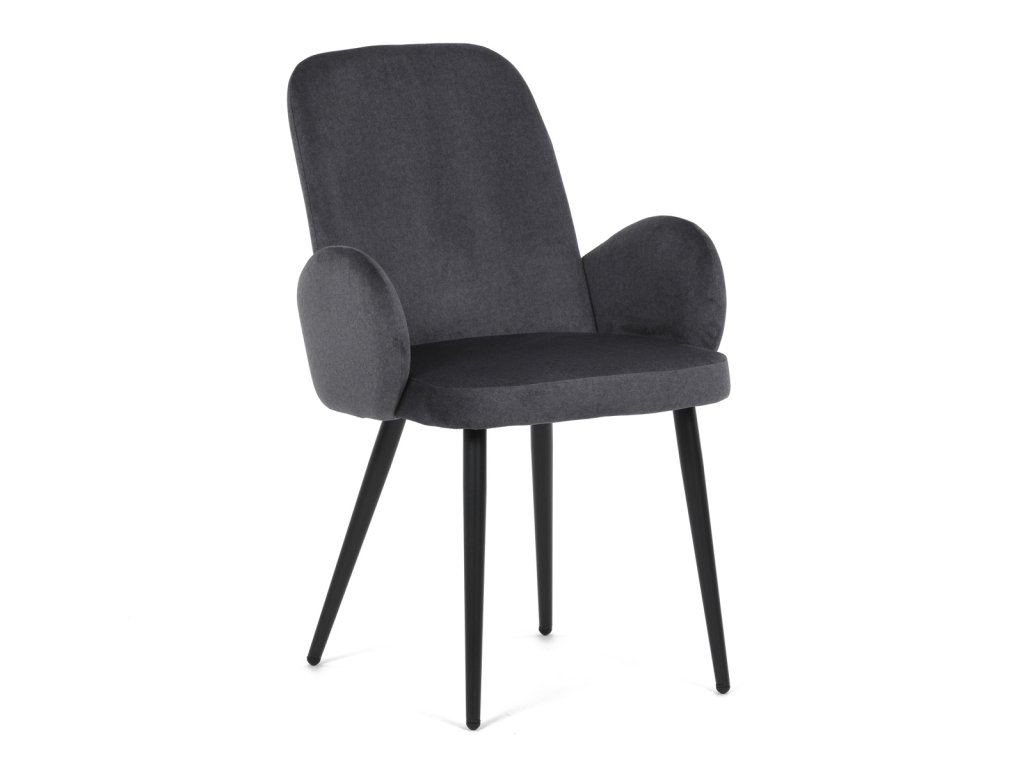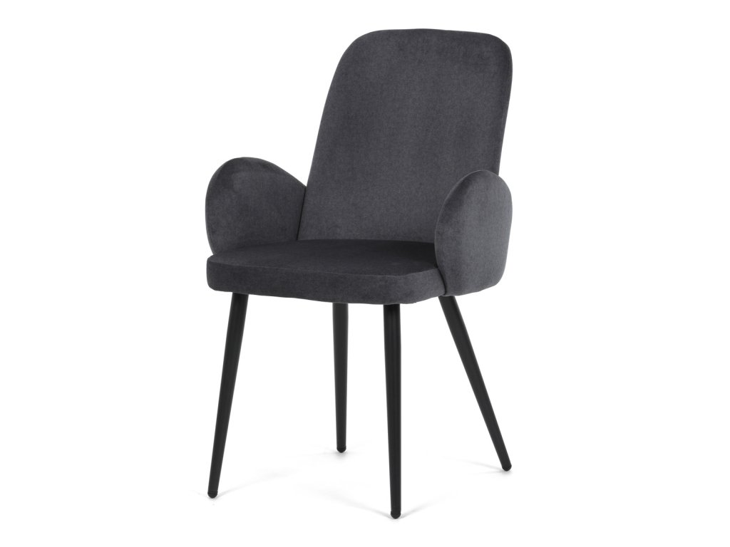Židle jidelní, šedá látka, černá kovová noha