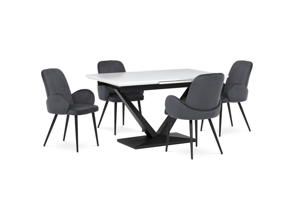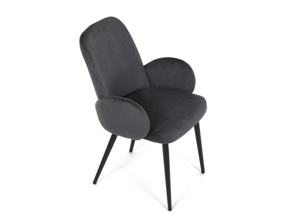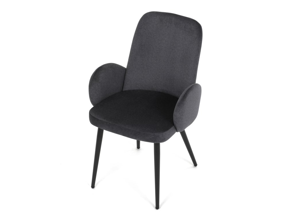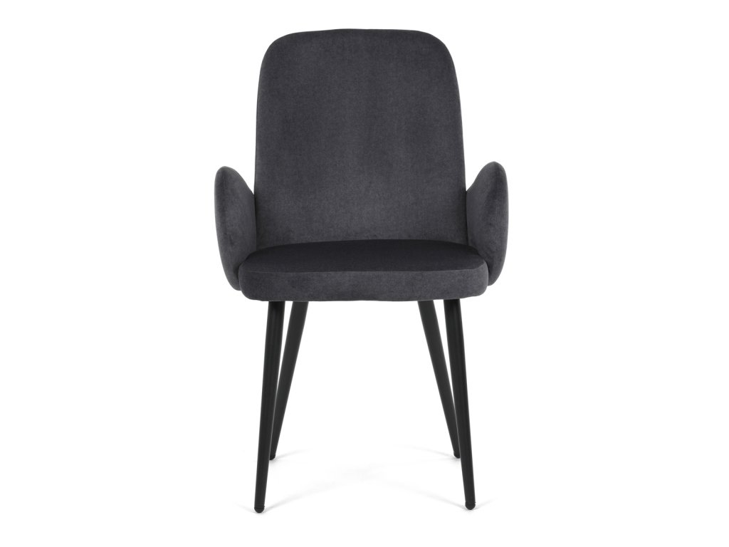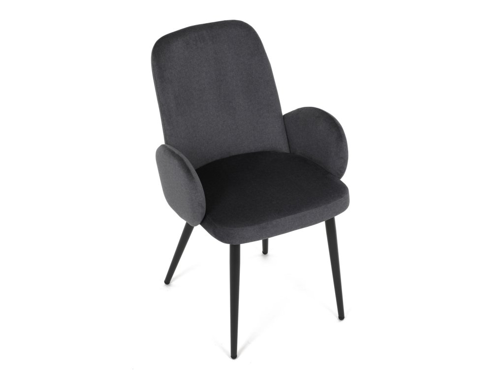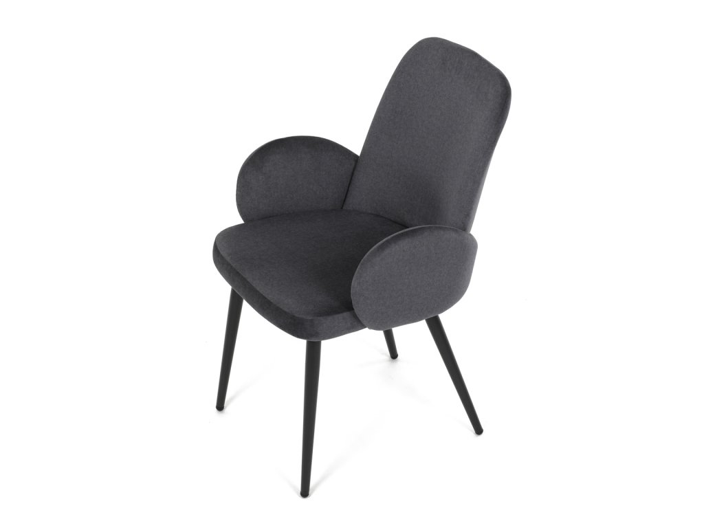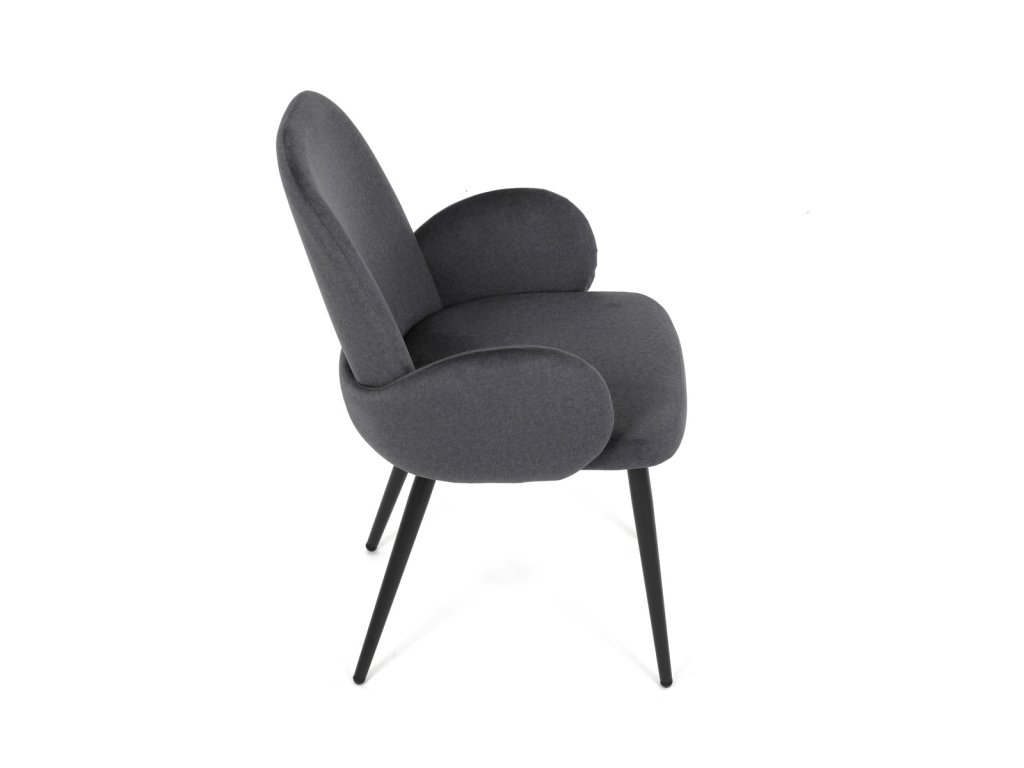 Židle jidelní, šedá látka, černá kovová noha