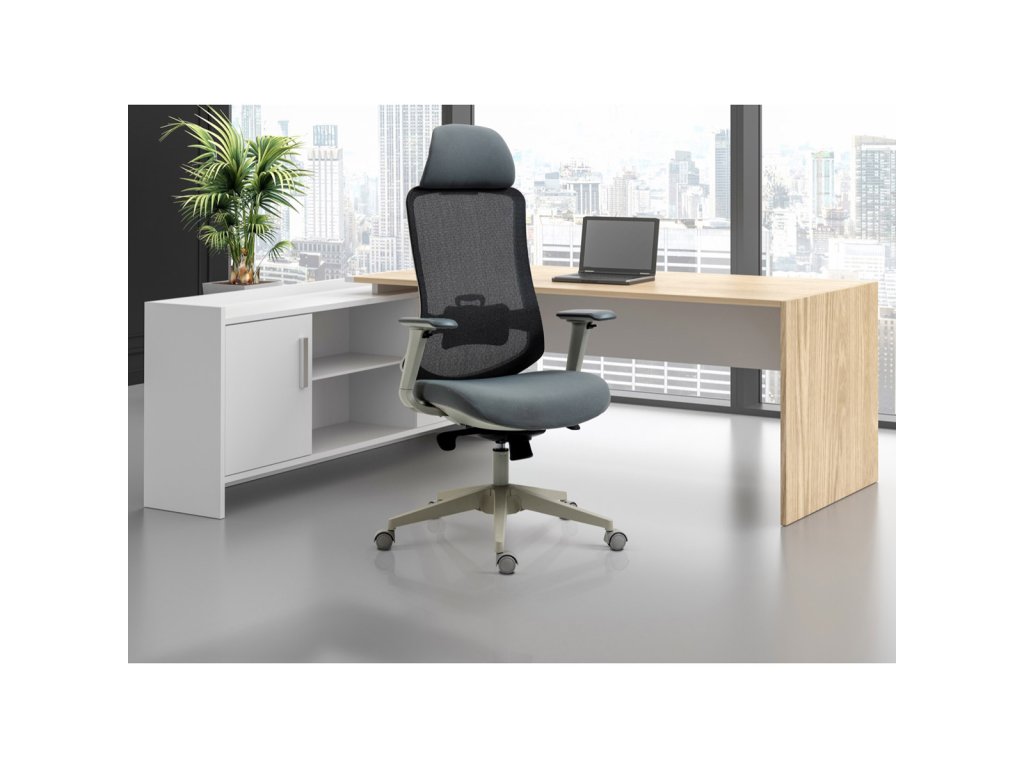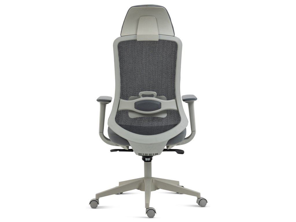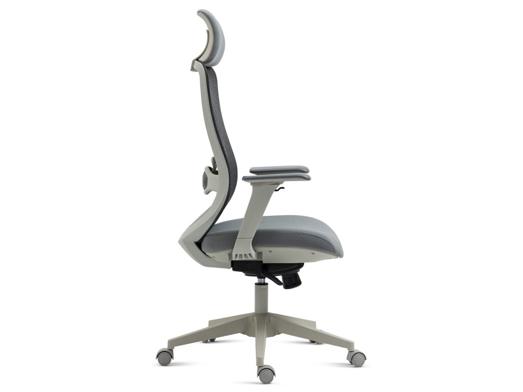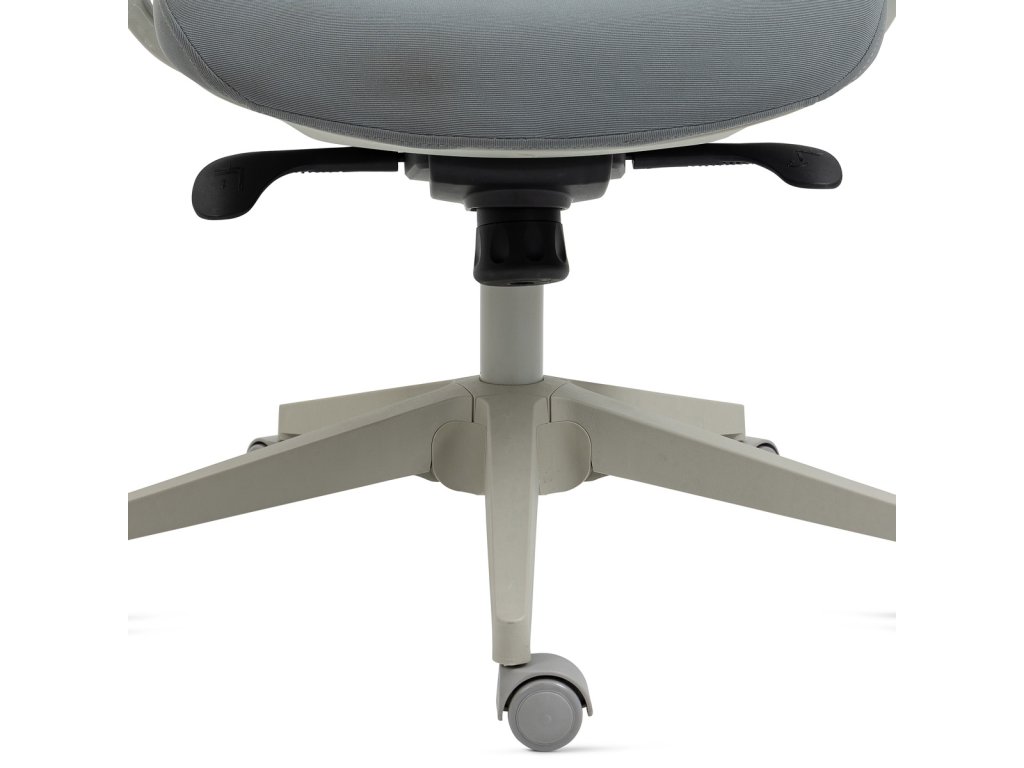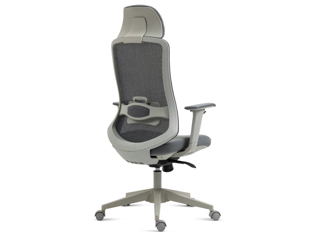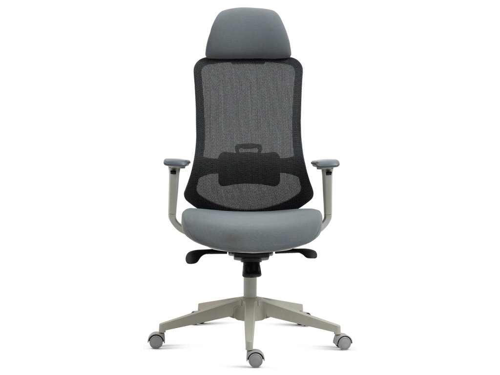 Kancelářská židle, šedý plast, šedá průžná látka a mesh, 4D područky, kolečka pro tvrdé podlahy, multifunkční mechanismu