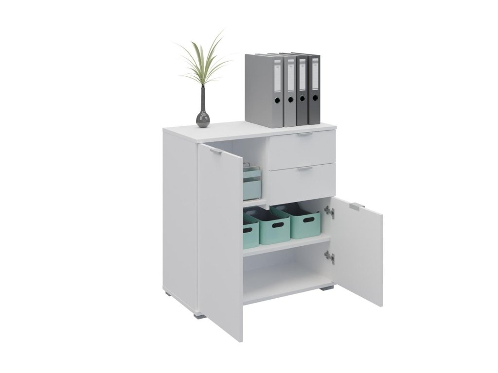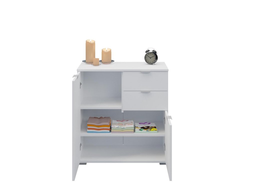 Komoda 2 dveře + 4 zásuvky TORINO bílá, kovové úchytky