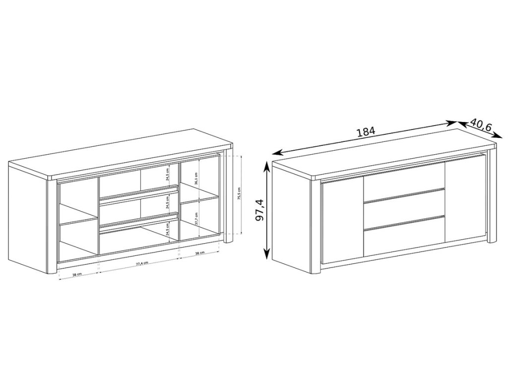 Komoda 2D3S LABRO dub ribbeck/bílá lesk