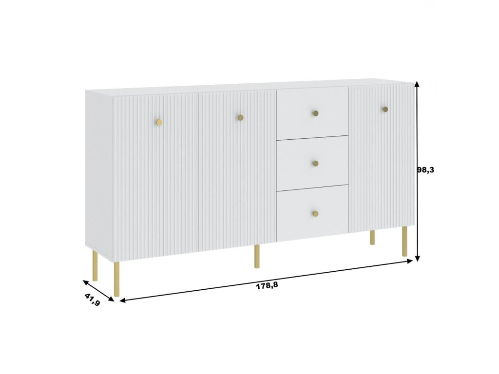 Komoda 3D3S ALMONTE bílá/zlatá
