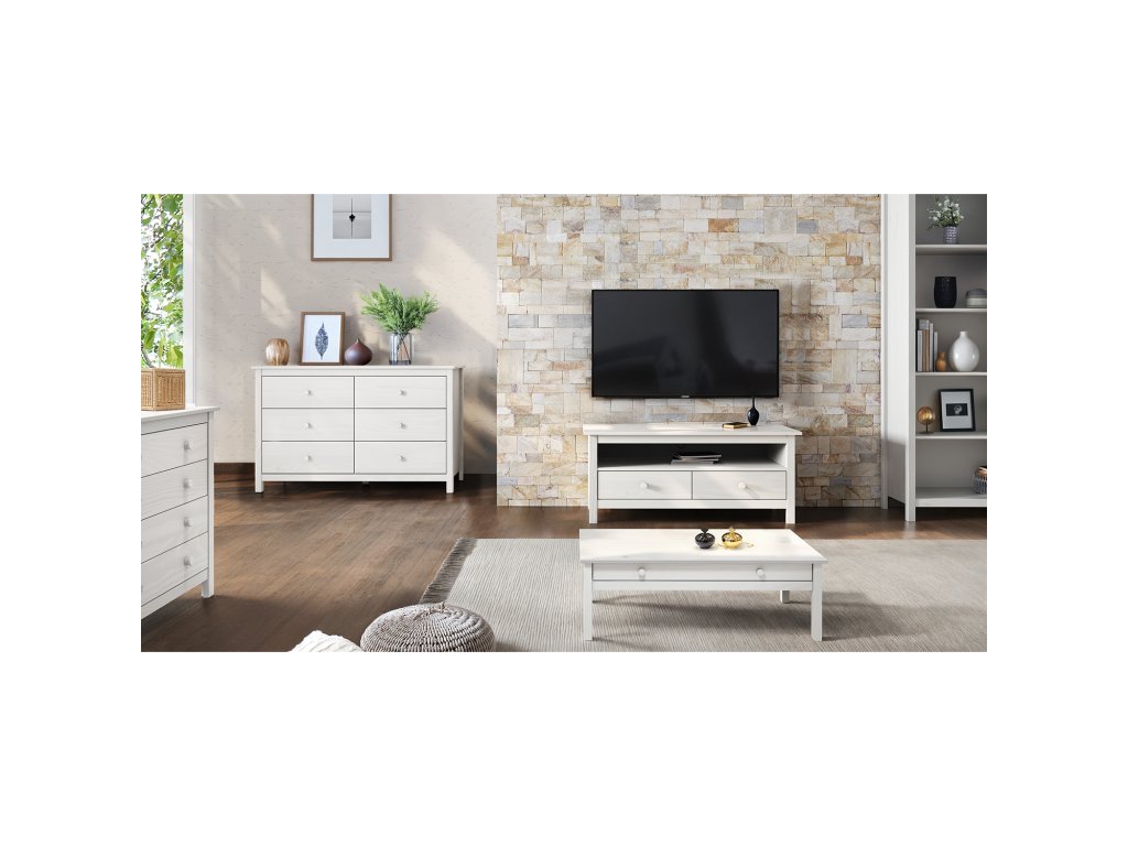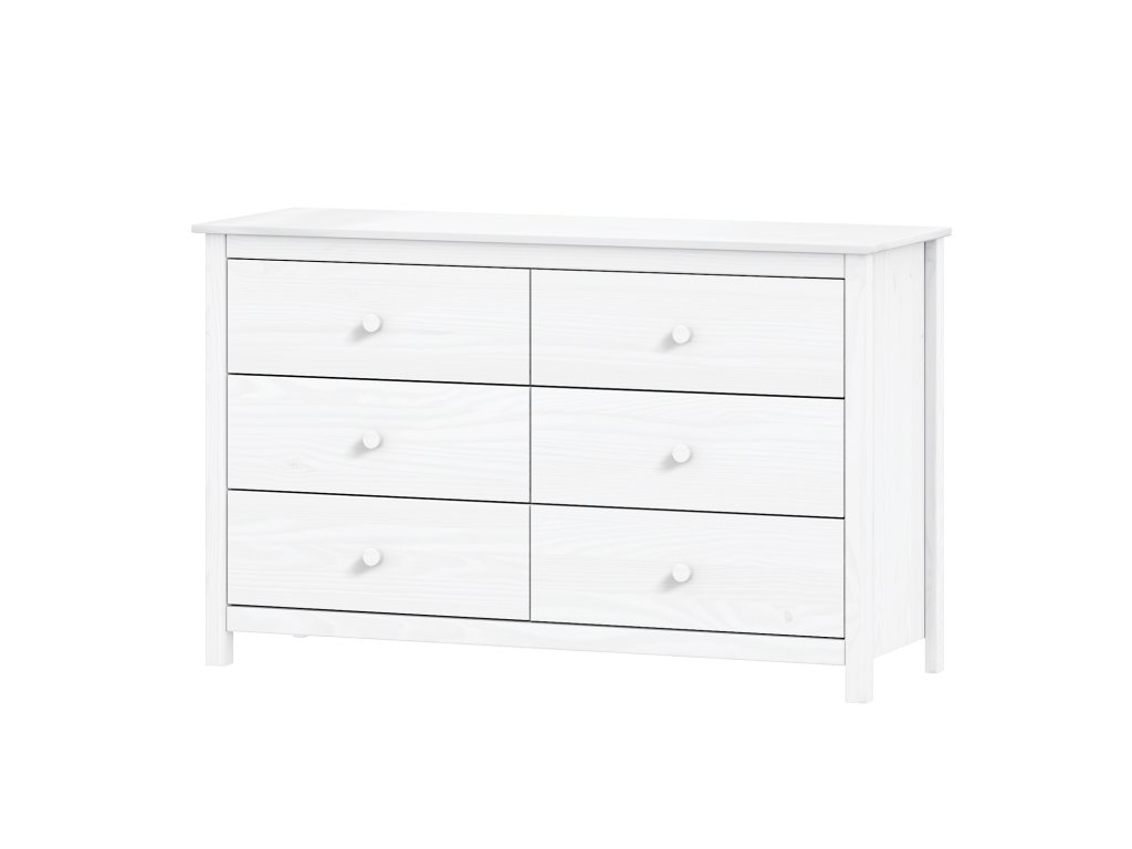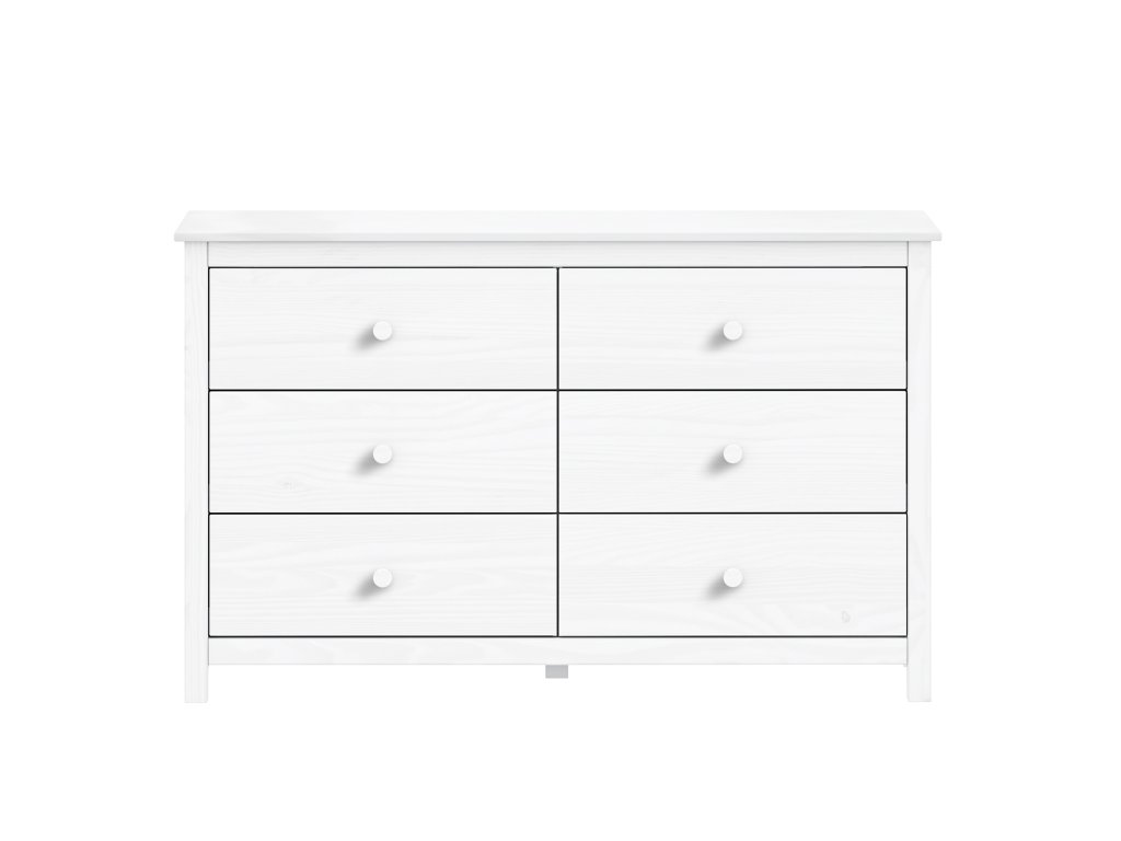 materiál masiv borovice, barevné provedení bílý lak šest zásuvek s kovovými pojezdyDodatočné parametre