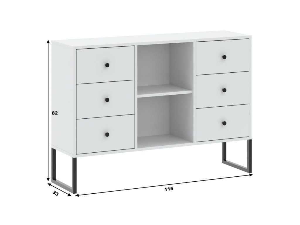 Komoda 3 zásuvky TORINO bílá, kovové úchytky