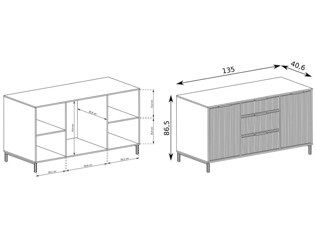 Příborník 3 dveře + 3 zásuvky RUBI tmavě hnědá