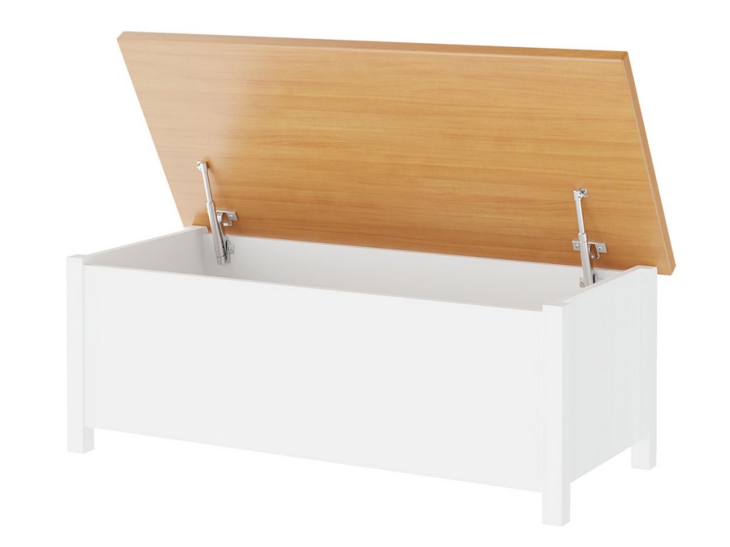 Komoda s výklopným víkem. Tento elegantní nábytek dodá romantickou atmosféru pokojíčku malé princezny i větší slečny. Komoda je vyrobena z desky LTD v kombinaci s MDF v barvě bílé s doplňkovou barvou dub Nash ( 22 mm ). Komodu je možné využít jako úložný prostor pro lůžkoviny nebo hračky, pokud na komodu umístíte polstrování - může sloužit jako sedací lavice. Dodáváme v demontovaném stavu.Dodatočné parametre