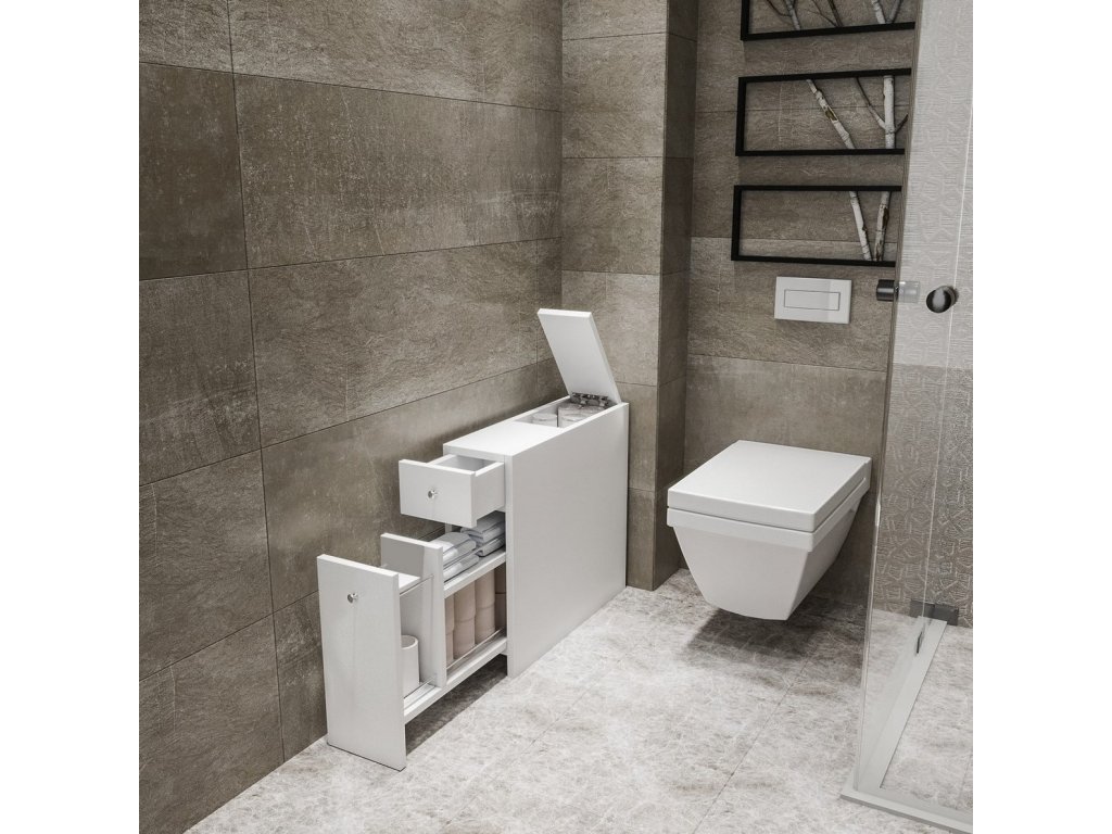 Úzká koupelnová skříňka KALDER bílá