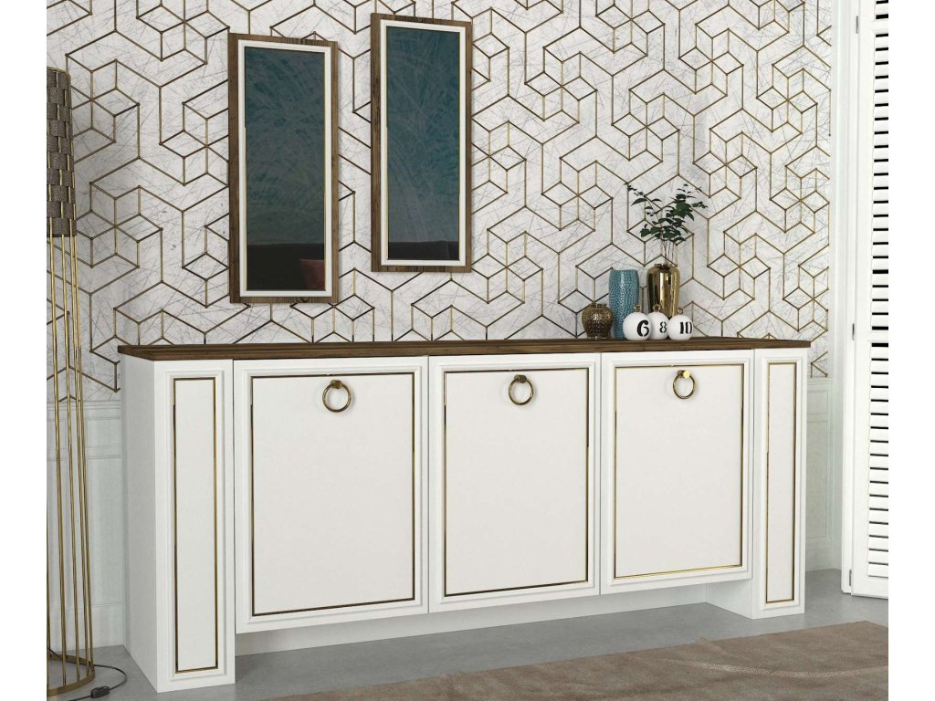 XAVANTES široká komoda s nástěnným zrcadlem, bílá/lydia