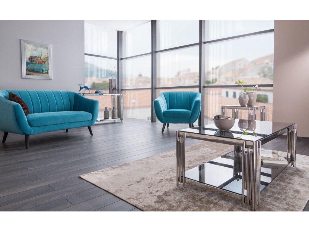 Konferenční stolek v moderním stylu glamour. Konstrukce je z kovu v barvě chróm, odkládací desky jsou z tvrzeného kouřového skla. Tento stylový kousek v netradičním dizajnu se bude vyjímat v každém interiéru. Dodáváme v demontovaném stavu.Dodatočné parametre