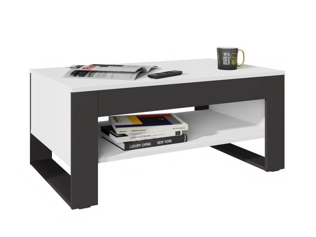 Konferenční stůl, MDF deska, bilý matt, černý kov