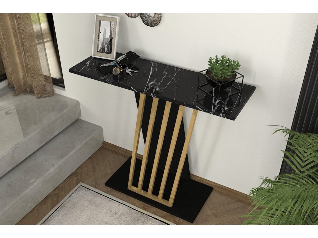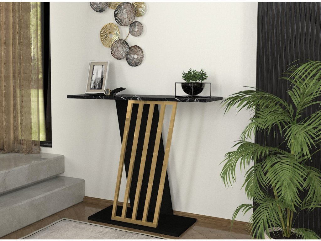 Přístavný stolek, MDF, dekor staré dřevo, kov, černý lak