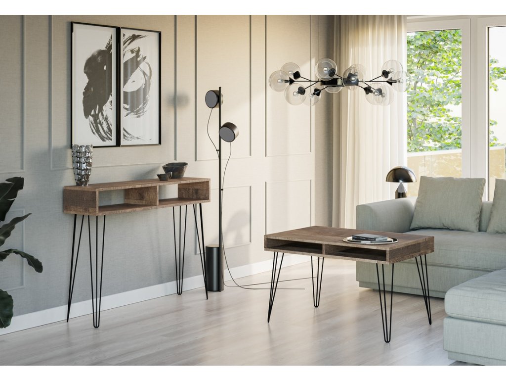 Set 2 ks stolků, MDF deska, dekor staré dřevo, kovová podnož, černý lak