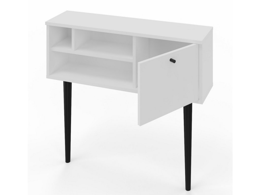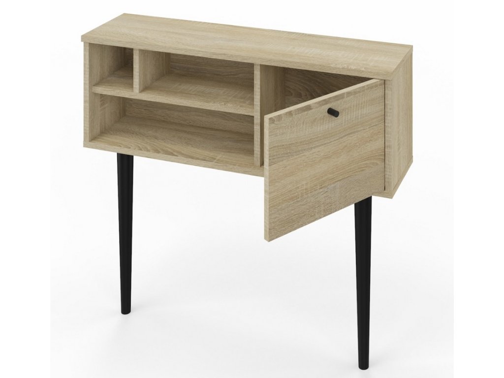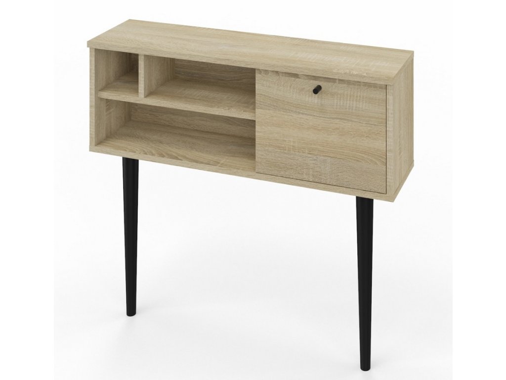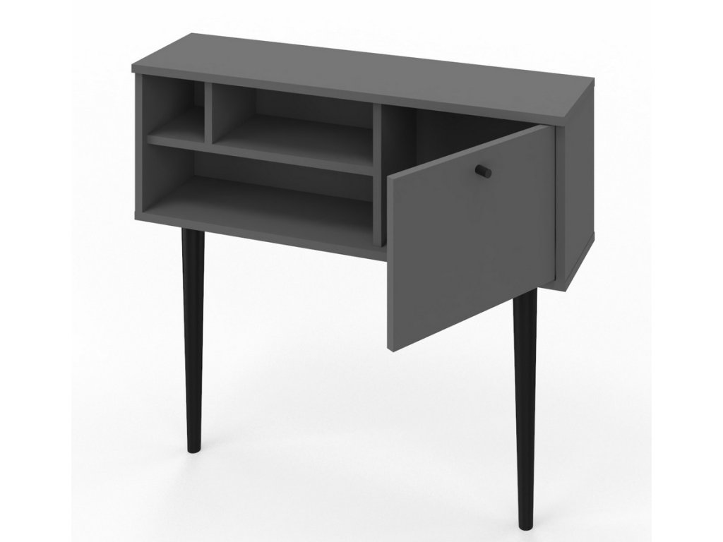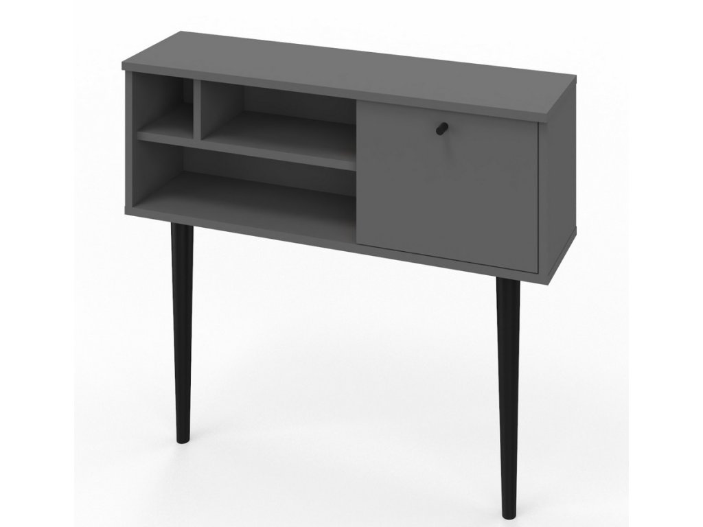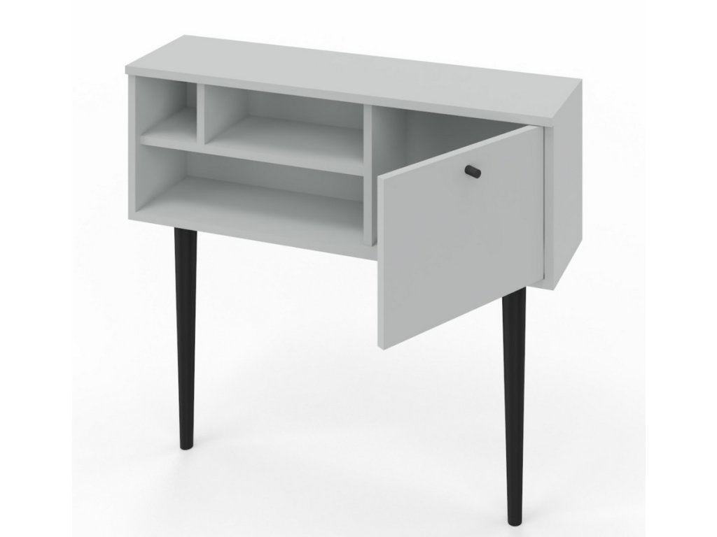 Konzolový stolek zaujme svým jednoduchým tvarem a bude ozdobou každého interiéru. Stolek má praktické přihrádky a je vyroben z kvalitního LTD v odstínu světle šedý kámen. Nohy jsou z masivního dřeva v barvě černé. Stolek je kombinovatelný s dalšími prvky této řady. Dodáváme v demontovaném stavu.Dodatočné parametre