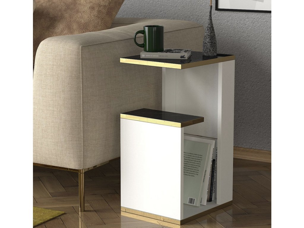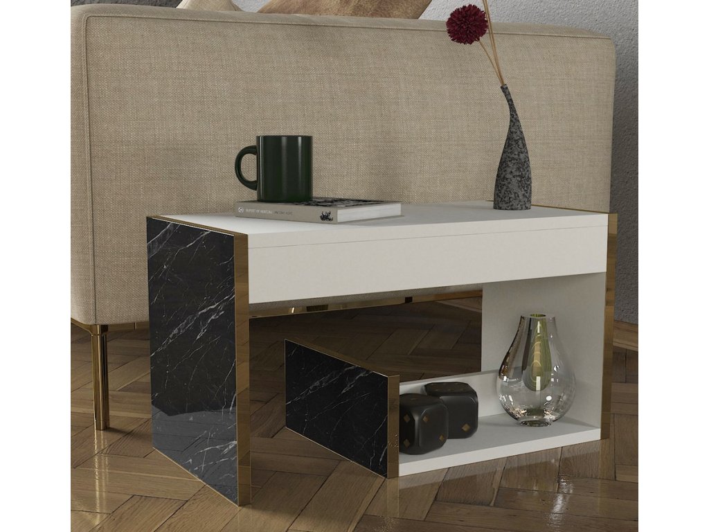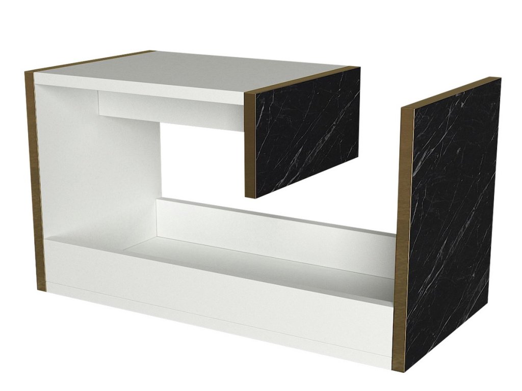 Set 2 ks stolků, MDF deska, dekor černý mramor, kovová podnož, černý lak