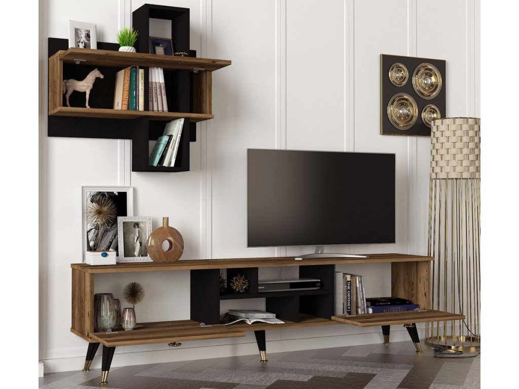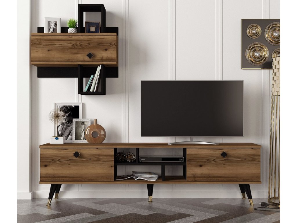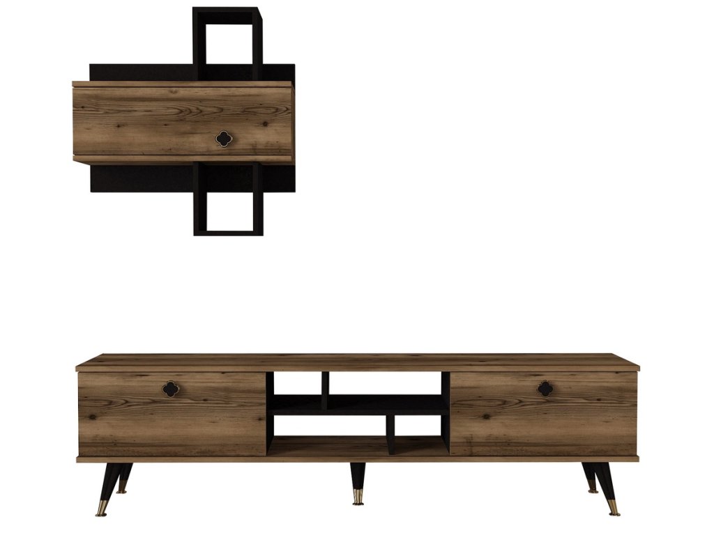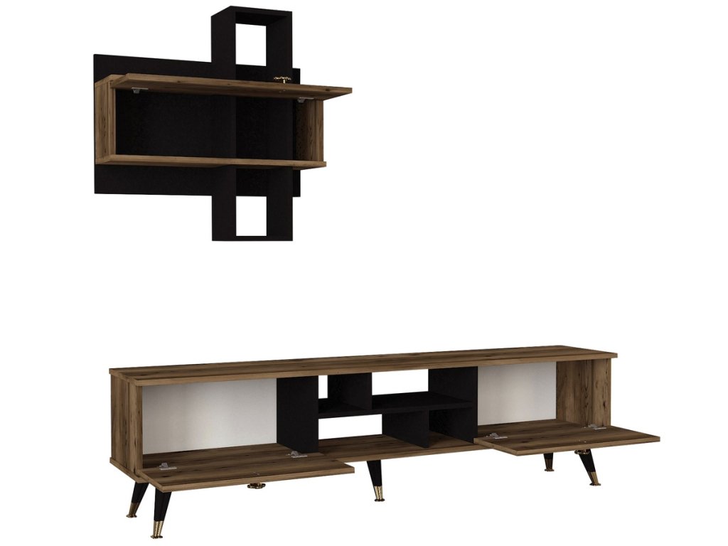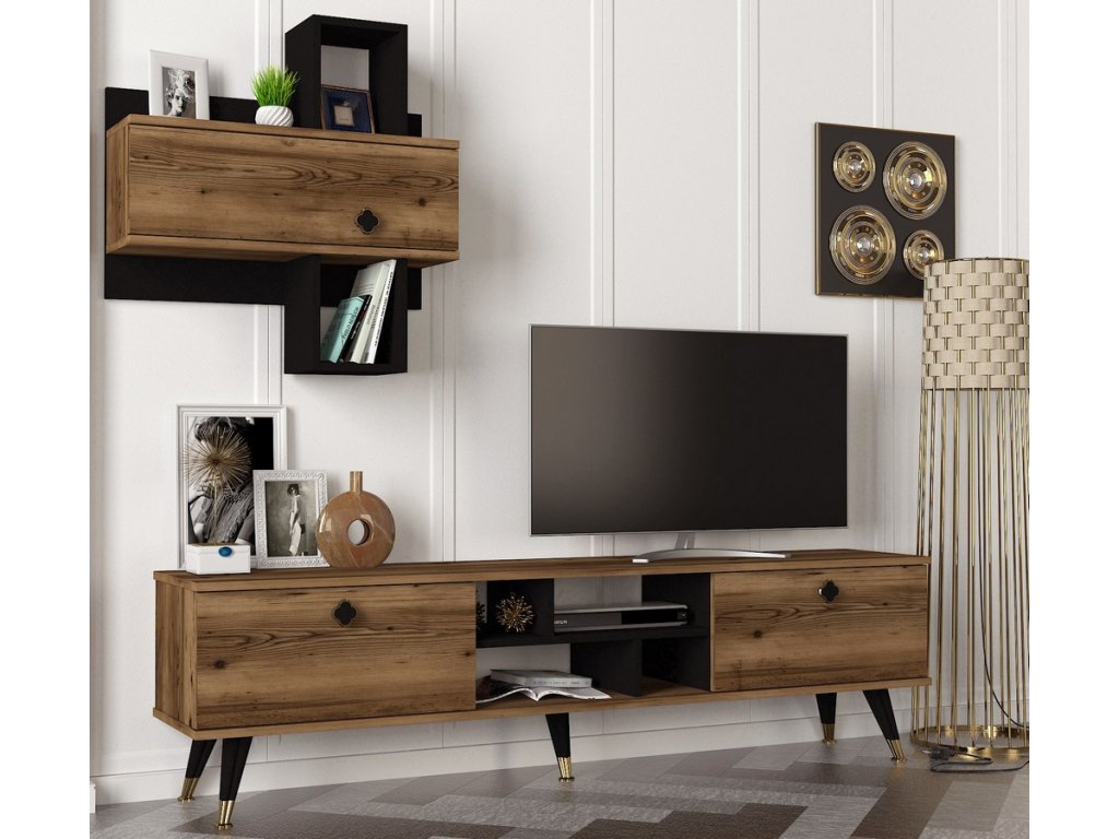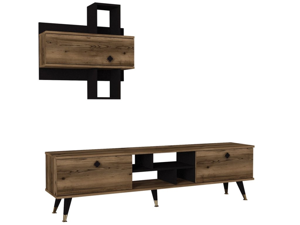 Set 2 ks stolků, MDF deska, dekor staré dřevo, kovová podnož, černý lak
