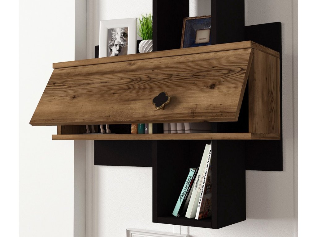 Odkládací stůl, MDF deska, dekor staré dřevo, černý kov