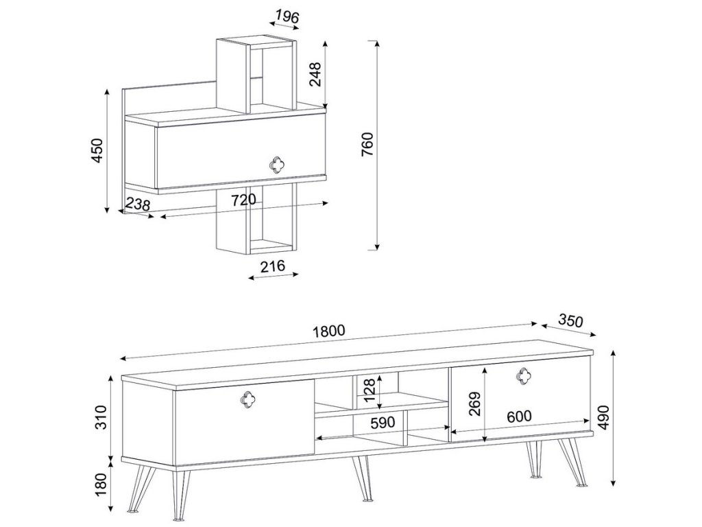 Stůl konferenční, set 2 ks, MDF deska, dekor divoký dub, kovová podnož, černý lak