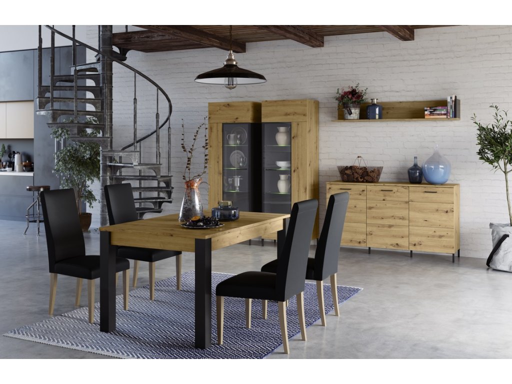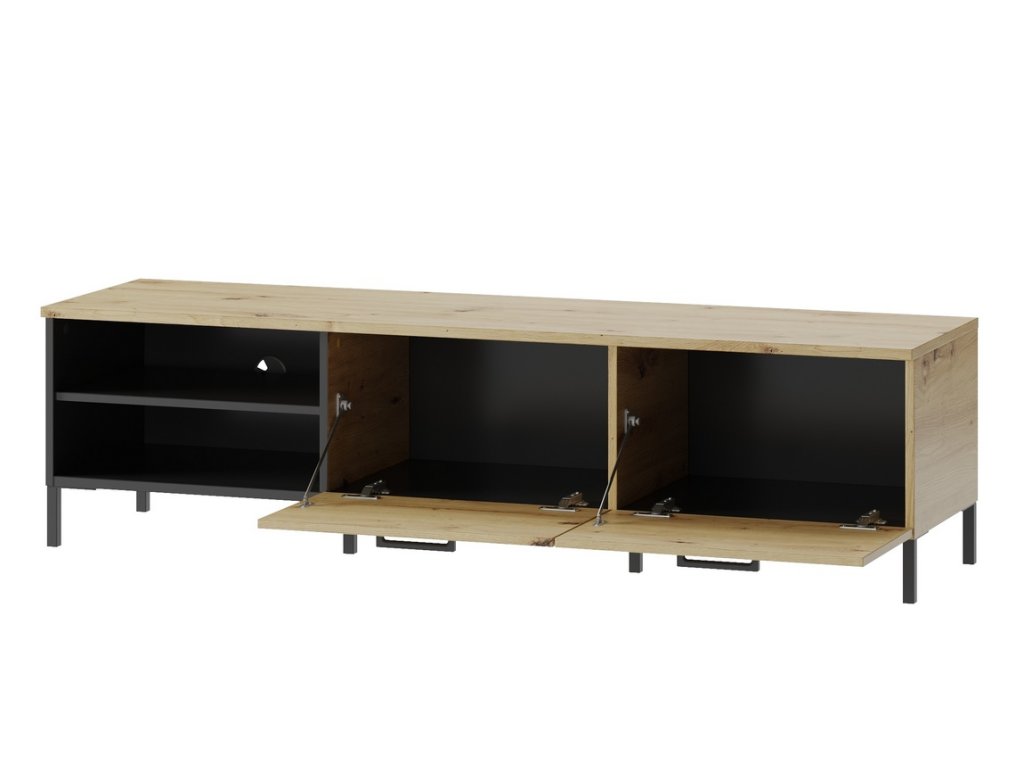 Televizní stolek se dvěma výklopnými dvířky. Stolek je vyroben z kvalitní LTD v barvě dub artisan. Úchyty jsou z černého plastu. Nožky jsou kovové černé. Dodáváme v demontovaném stavu.Dodatočné parametre