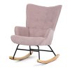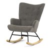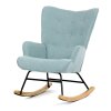 Křeslo houpací, potah světle modrá látka, dřevěné nohy, masiv kaučukovník