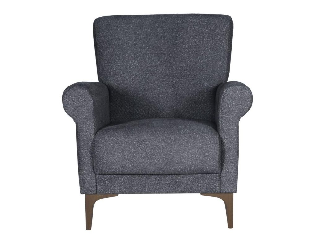 Křeslo, potah tmavě šedá látka, dřevěné nohy - masiv kaučukovník