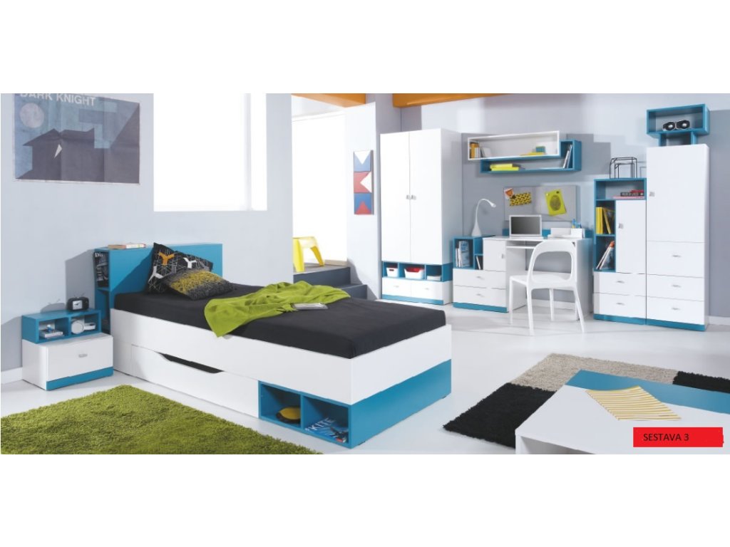 MOLI je moderní nábytek pro děti nebo mládež v kombinaci barev bílá LUX/modrá nebo bílá LUX/žlutá. Tento nábytek je tvořen především do dětských nebo studentských pokojů. Výrobce inovoval zejména barevné provedení.Modré detaily pro kluky, žluté pro holky, tento nábytek bude bavit všechny po mnoho let. V nabídce tedy naleznete všechny díly nábytku, které jsou třeba pro správně vybavený pokoj. Celek se skládá z 21 produktů. Nábytek má veškeré potřebné atesty, které splňuje na výbornou. Všechny hrany jsou opatřeny ABS lištou, která zajistí trvanlivost a odolnost proti nárazu. Nábytek je dodáván vdemontu s montážním návodem.