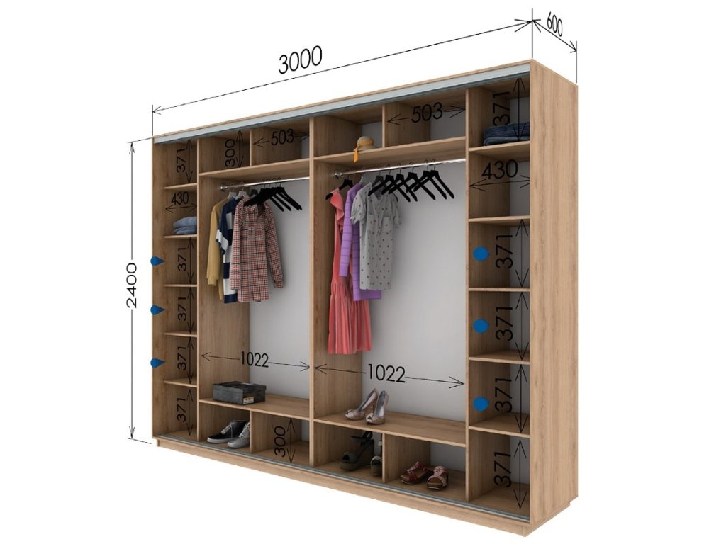 Šatní skříň REFLECTION 280 kraft zlatý/zrcadlo