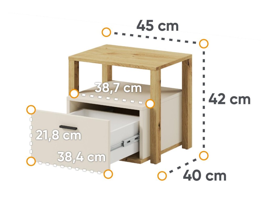 Noční stolek se zásuvkou LIMERA barva dub artisan/béžová