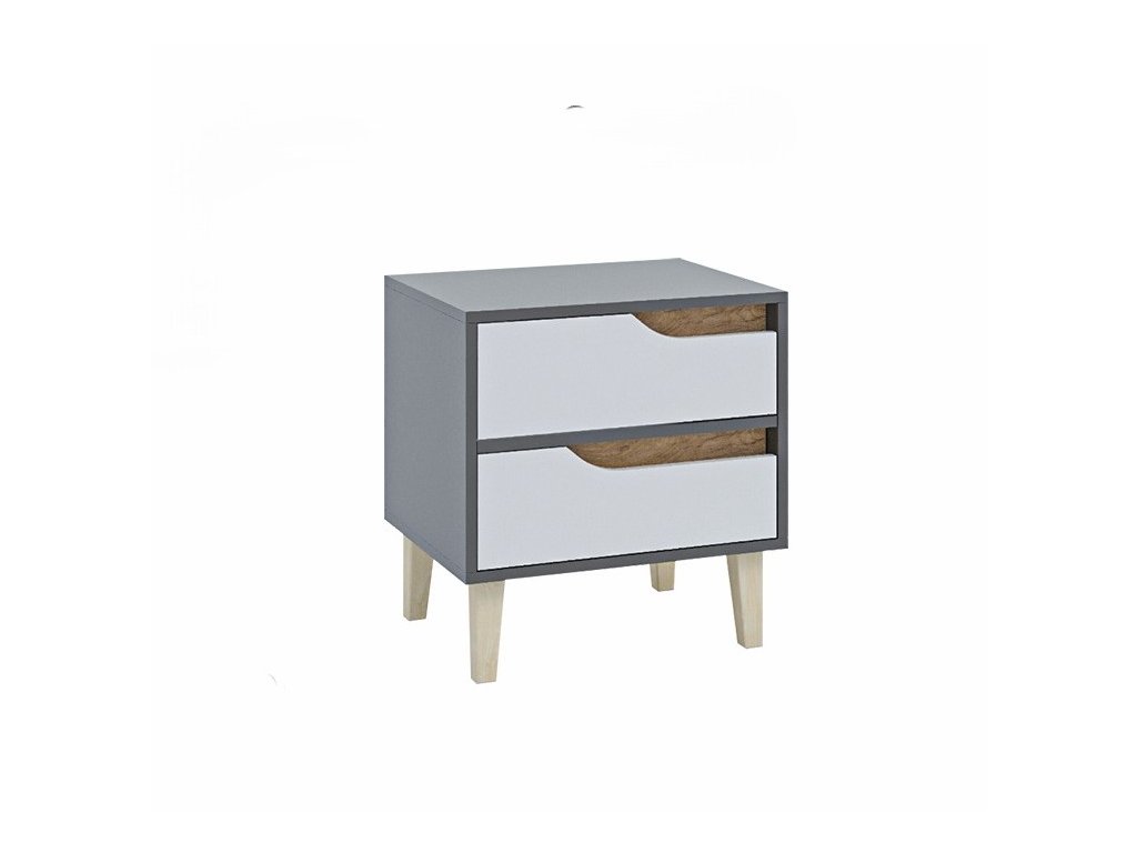 WOOD noční stolek 2S, antracit/bílá/dub Craft zlatý