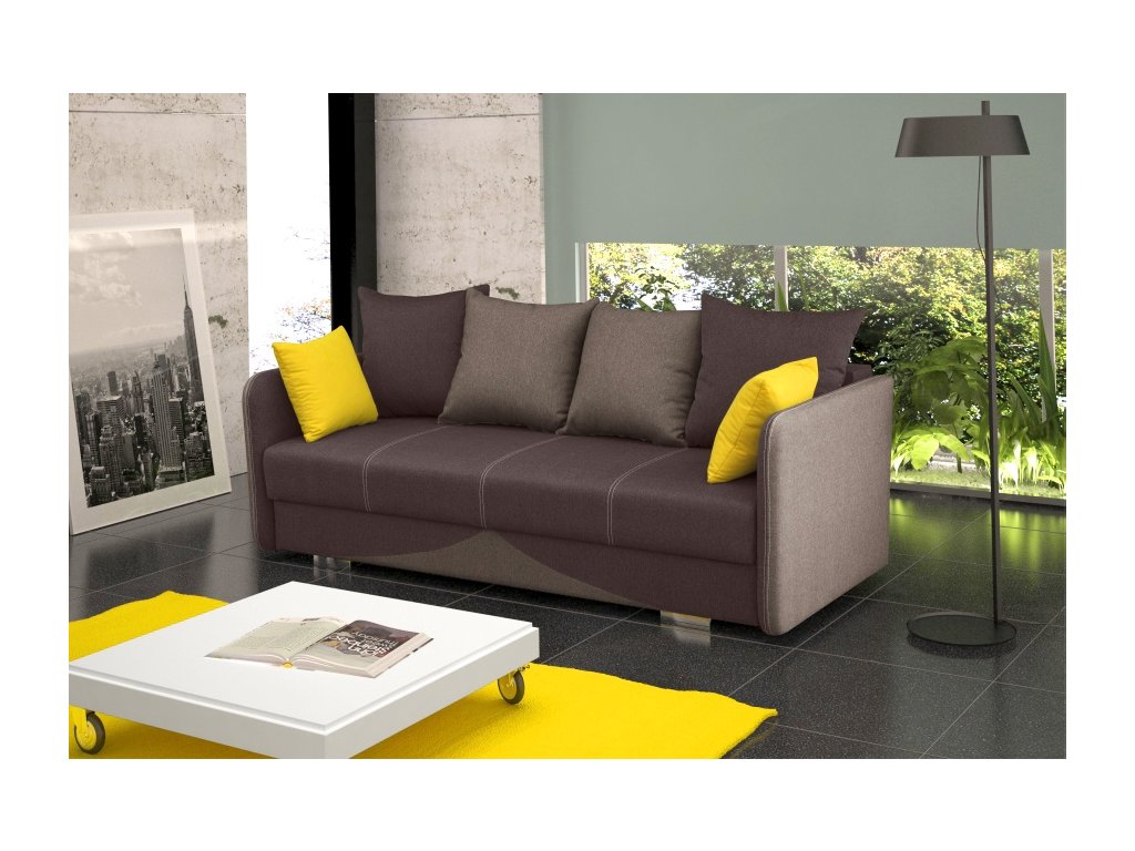 Moderní pohovka se snadným rozkladem a úložným prostorem. Pohodlné sezení Vám zajistí kombinace pružin faliste a bonell s kvalitní PUR pěnou. Jednoduchým rozkladem pomocí automatu vznikne lůžko vhodné k příležitostnému spaní. Pohovku dodáváme v několika barevných provedeních, které také naleznete v naší nabídce. V ceně pohovky jsou 4 velké opěrné polštáře a dva malé žluté polštářky. Ostatní vyobrazené dekorace nejsou v ceně.