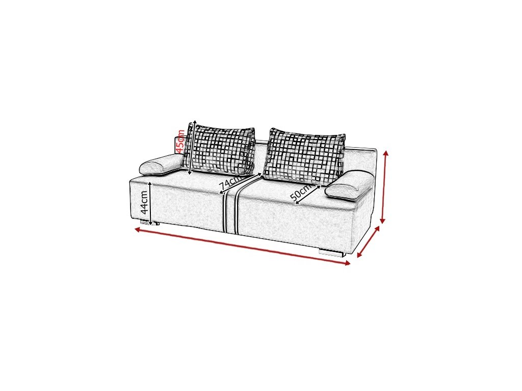 Moderní rozkládací pohovka s úložným prostorem. Výplň pohovky tvoří pružiny bonell v kombinaci s kvalitní PUR pěnou. Jednoduchým rozkladem pomocí automatu vznikne lůžko vhodné k příležitostnému spaní. Pohovku dodáváme v několika barevných provedeních, které také naleznete v naší nabídce.