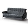 Rozkládací pohovka click-clack, 3místná, držák nápojů, potah tmavě šedá látka, nohy masiv buk