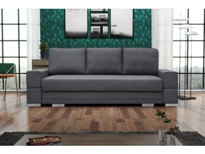 Rozkládací pohovka click-clack, 3místná, držák nápojů, potah tmavě šedá látka, nohy masiv buk