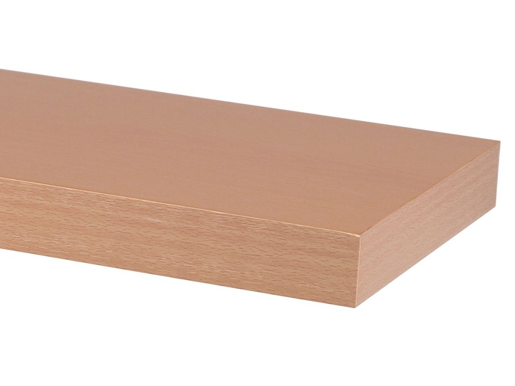 Moderní minimalistická polička v provedení dekor přírodní buk. Rám je z MDF, povrch lamino v dřevěném dekoru. Balení obsahuje poličku, kovový držák, šrouby a hmoždinky pro uchycení. Nosnost poličky je 5-15 kg podle druhu nosného zdiva.Dodatočné parametre