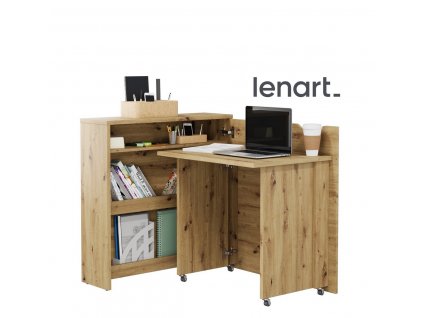 Rozkládací psací stůl v moderním a jednoduchém designu snadno složíte do komody a ušetříte tím spousty místa. Díky praktickým policím máte vše po ruce. Stůl je k dispozici ve dvou variantách - pravé nebo levé. Vyberte si ten, který lépe vyhovuje Vašim požadavkům. Kolečka umístěná pod bočními podpěrami usnadňují otevírání a zavírání stolu. Stůl je vyroben z lamina tloušťky 16 mm, pracovní deska stolu z lamina tloušťky 22 mm. Maximální nosnost police je 5 kg, pracovní desky 3 kg. Šířka stolu po rozložení je 136 cm. Dodáváme v demontovaném stavu.Dodatočné parametre