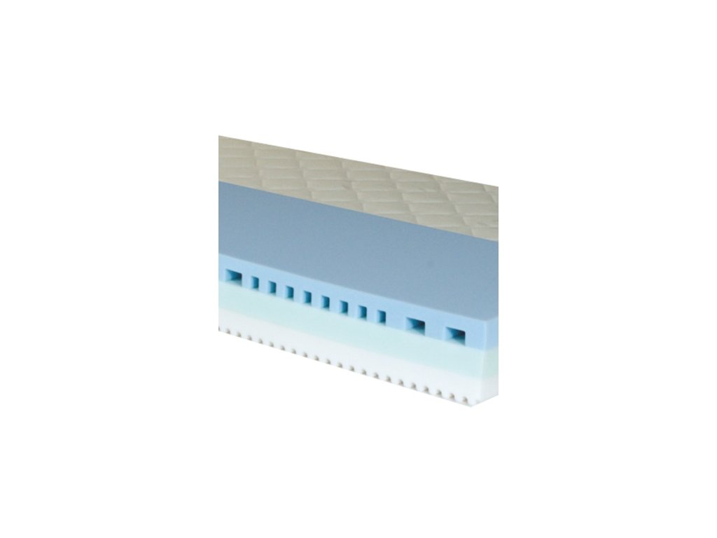 s matrací Airfresh- je sendvičová středně tuhá 5-zónová matrace, vyrobená z kvalitních, elastických PUR pěn. Profilovaný průřez dodává matraci pružnost, komfort a vzdušnost. Matrace je oboustranná se dvěma tuhostmi. Je opatřena snímateným potahem pratelným na 60°C. Nosnost do 120 kg. Výška matrace je cca 20 cm.