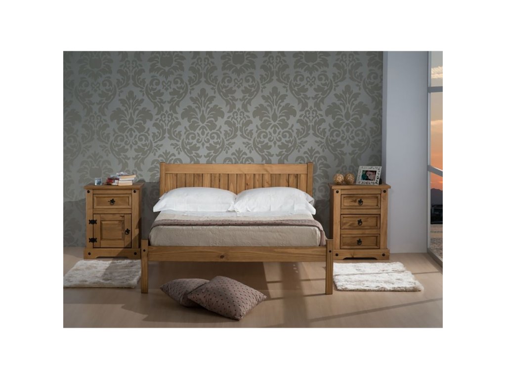 materiál masiv borovice voskovaná v medovém odstínu rošt je součástí dodávky doporučený rozměr matrace 140 × 200 cm součást sestavy CoronaDodatočné parametre