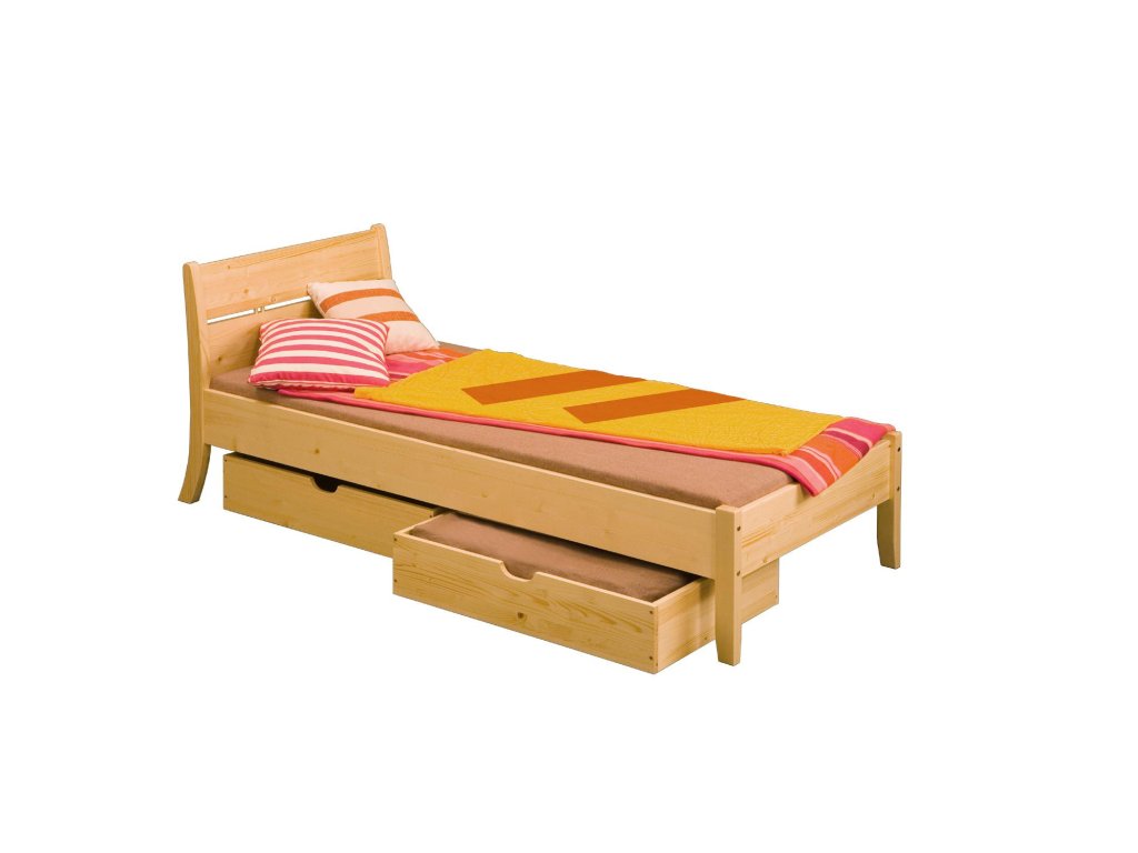 materiál masiv borovice, lakované provedení výška sedu 50 cm, cena bez roštu a matrace doporučený rozměr matrace 90 × 200 cm (M2, M12, M5, M14, M26, M24) a rošt R1Dodatočné parametre