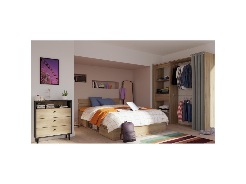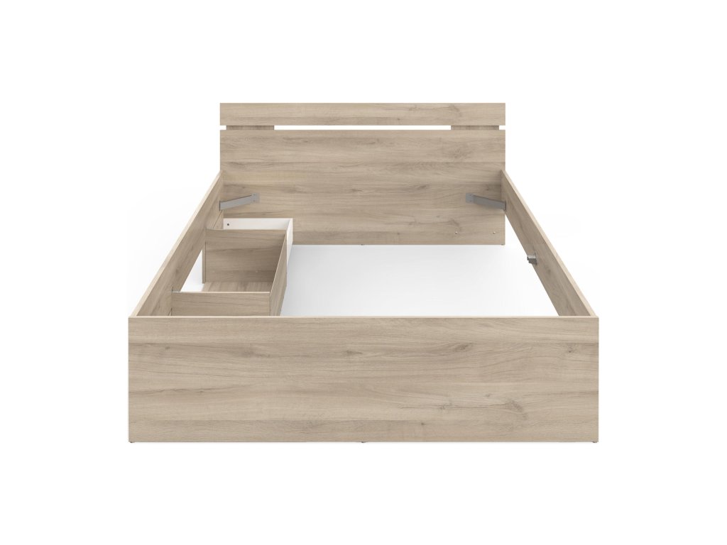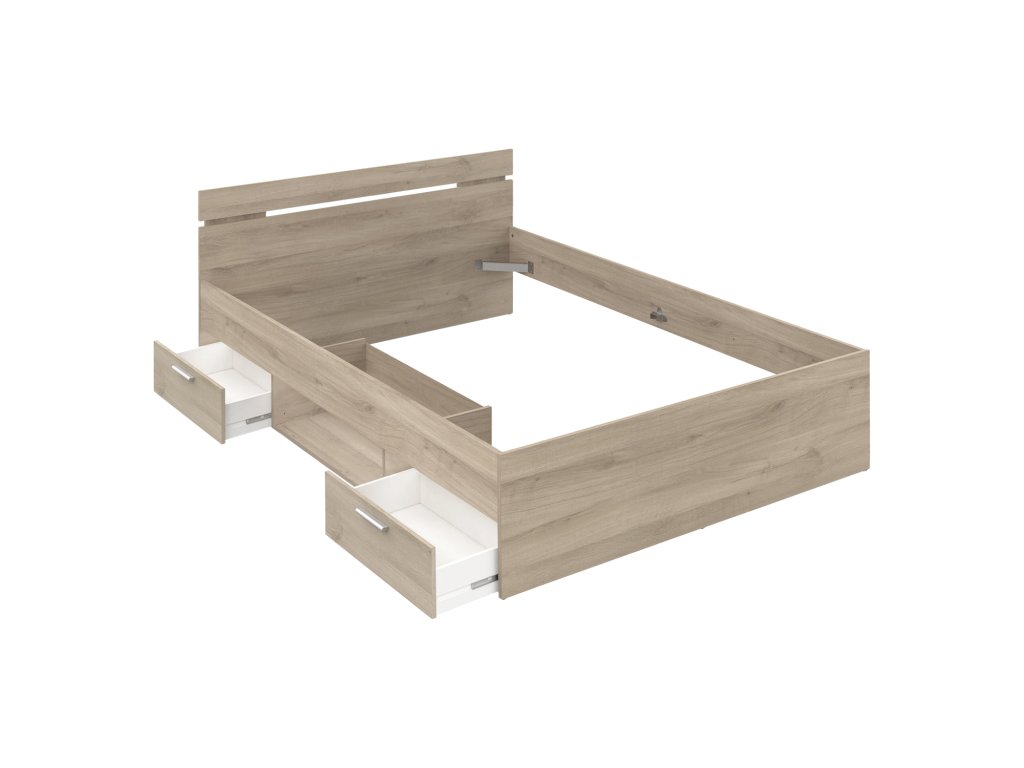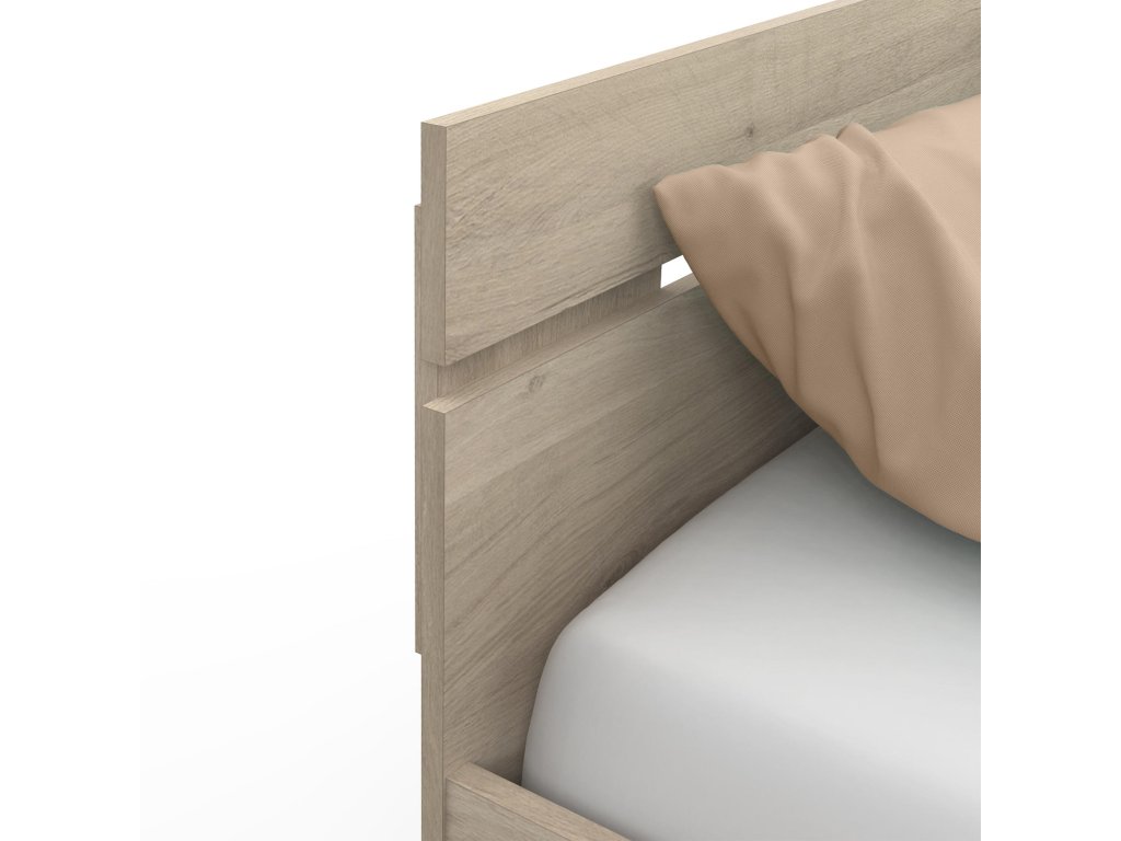 barevné provedení dub Kronberg 2 úložné zásuvky s kovovými pojezdy, rozměr zásuvky (š/v/h) 56 × 11 × 34 cm rozměr niky (š/v/h) 69 × 36 × 26 cm, zásuvky a nika jsou v ceně matrace a rošt nejsou v ceně, doporučený rozměr matrace 140 × 200 cm k posteli je nutno použít samonosný rošt v rámu 140 × 200 cm (7160)Dodatočné parametre