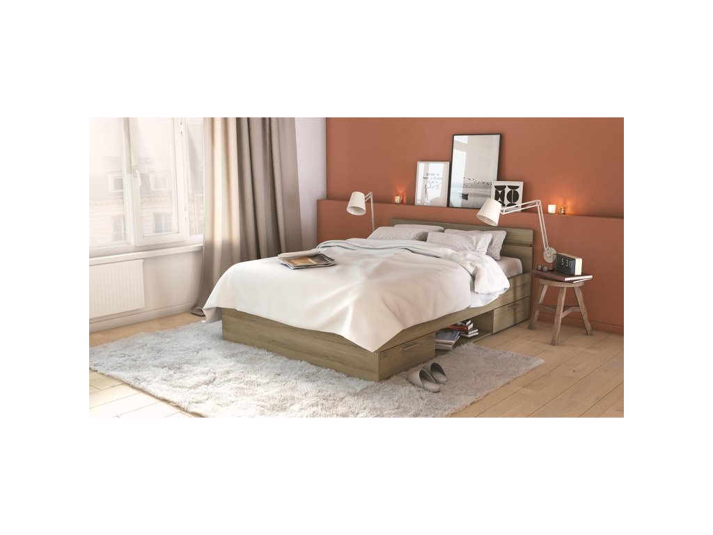Multifunkční postel 140x200 MICHIGAN dub