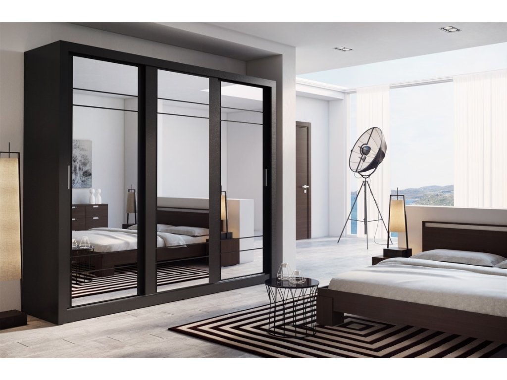 Šatní skříň 02 ARTI 250 černá zrcadlo