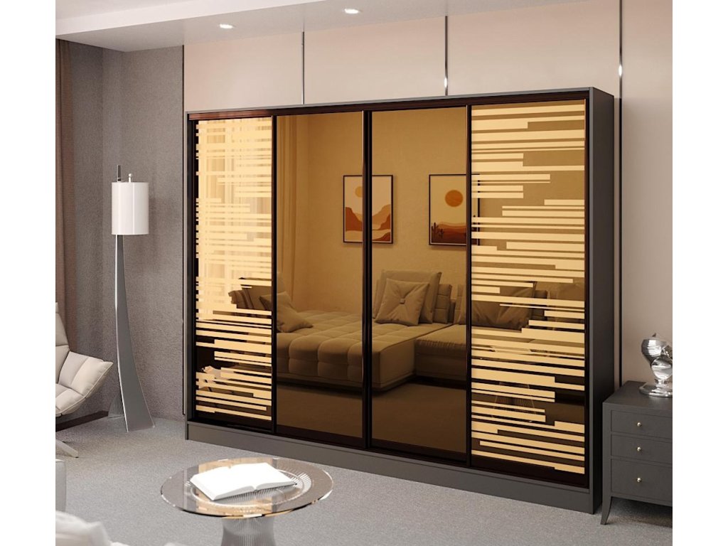 Šatní skříň s posuv. dveřmi 280 LIENA antracit/zrcadlo bronz