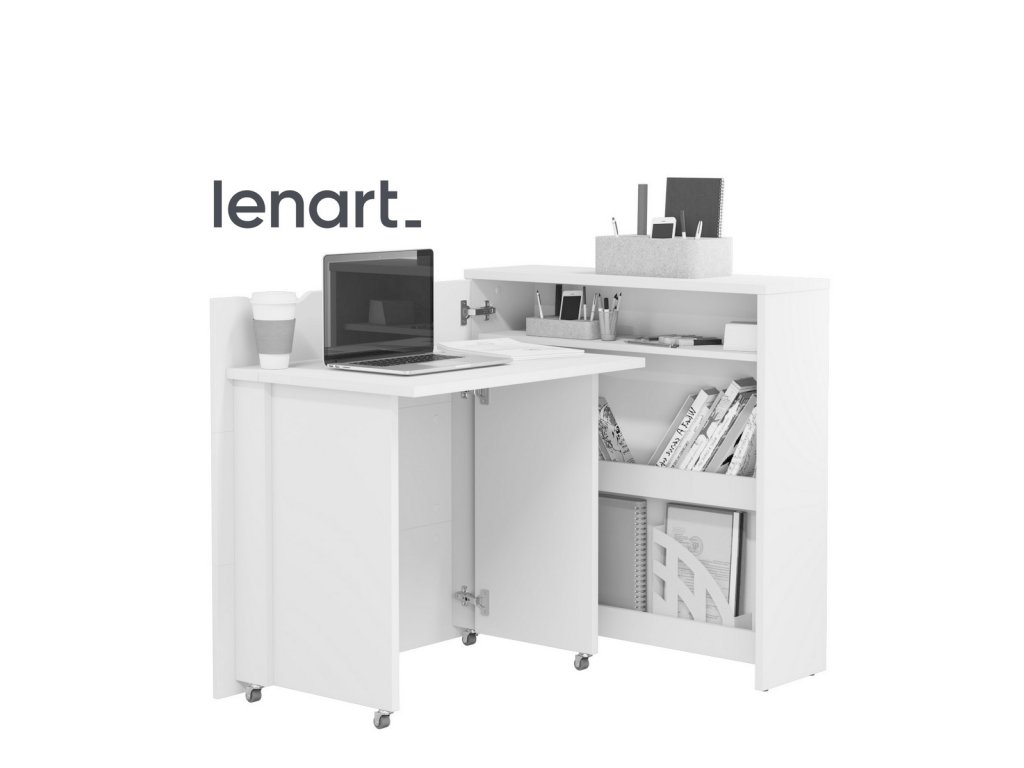 Rozkládací psací stůl levý REBECCA bílý lesk