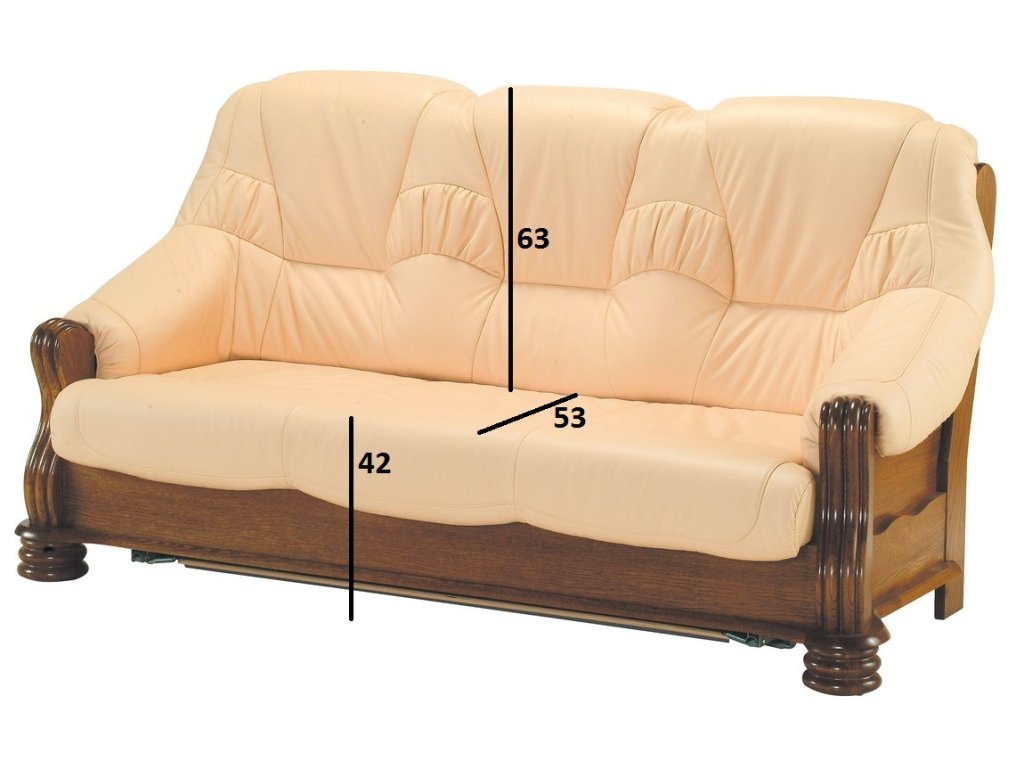 Elegantní rozkládací trojsedák, který svým vzhledem a provedením zaručuje luxus a pohodlí. Tento trojsedák vyrábí značkový výrobce, který si potrpí na kvalitě a detailech. Trojsedák je rozkládací, plocha po rozložení je 140 x 190 cm. Trojsedák je vyrobený z potahové látky s širokým výběrem barev. Zadní strana je potažena černou látkou, za příplatek lze zajistit sedačku celočalouněnou. Nohy jsou vyrobeny z masívního dubového dřeva s výběrem moření. Dřevo je třeba čistit suchým měkkým hadříkem, je možné též používat prostředky na konzervaci a ochranu dřeva neobsahující silikon. Tento trojsedák můžete doplnit o dvojsedák a křeslo. Nabízíme i výběr dalších potahových látek.Dodatočné parametre