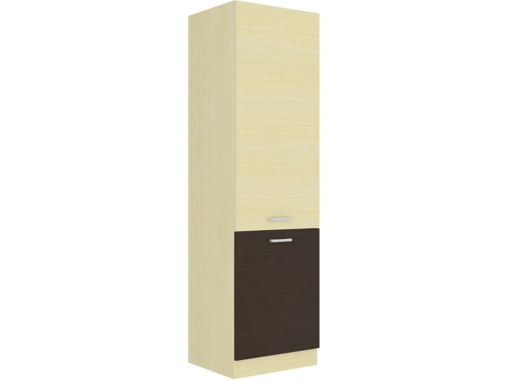 Potravinová skříň - spíže CHAMONIX II vyrobená z kvalitního lamina. Korpus i sokl ( 10 cm ) jsou v barvě dub ferrara a spodní dvířka v barvě dub tmavé legno a vrchní dvířka v barvě dub ferrara. Rozměry skříňky - šířka 60 cm, výška 210 cm, hloubka 57 cm. Skříň má levé otvírání dvířek. Úchyty jsou z plastu. V naší nabídce naleznete další výběr skříněk k sestavení celé kuchyně.Dodatočné parametre