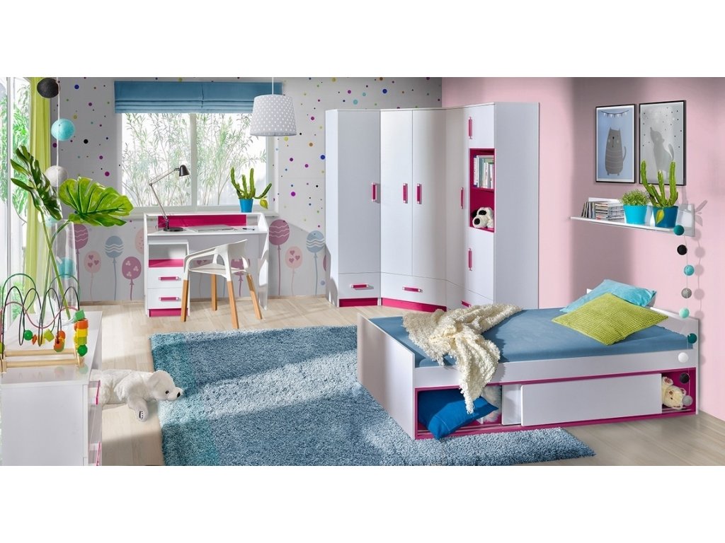 Rohová šatní skříň TRAFICO 2 bílá/růžová