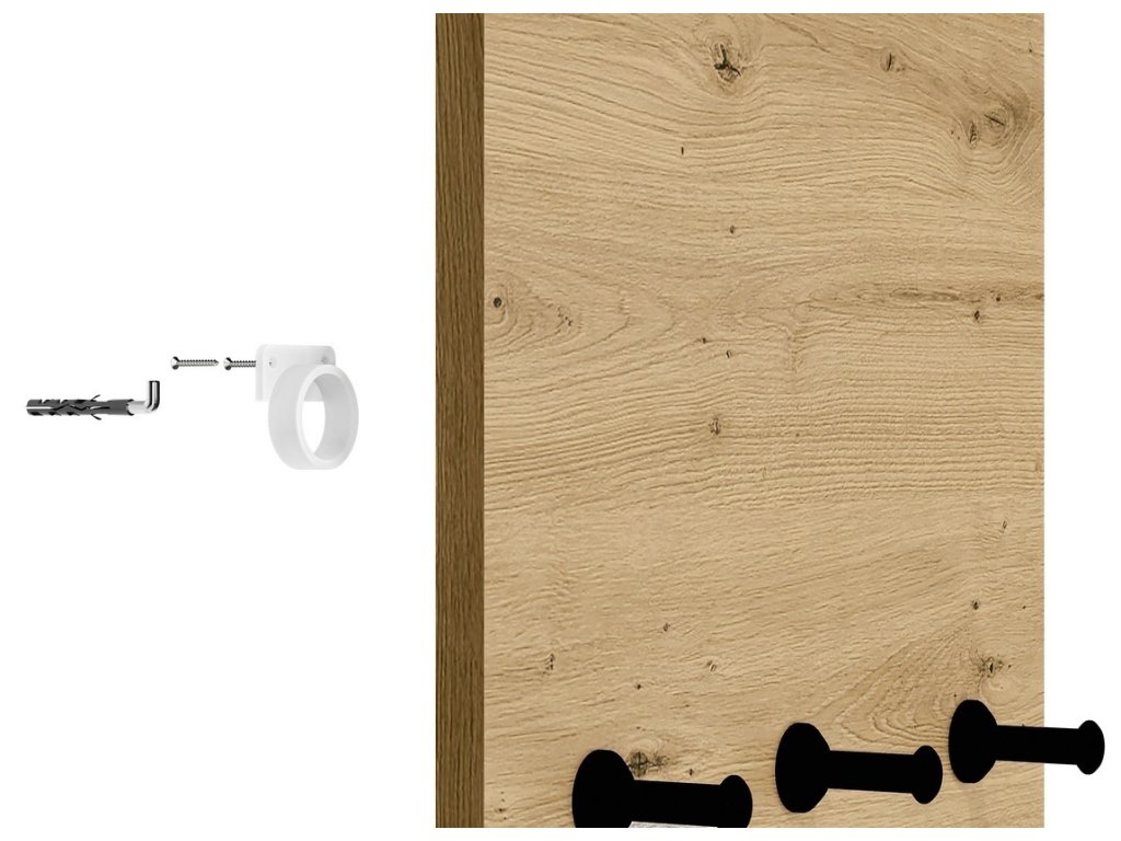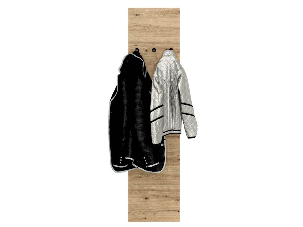 Věšáková stěna je vyrobena z desky LTD v barvě dub artisan. Možnost dokoupení dalších segmentů. Dodáváme v demontovaném stavu.Dodatočné parametre