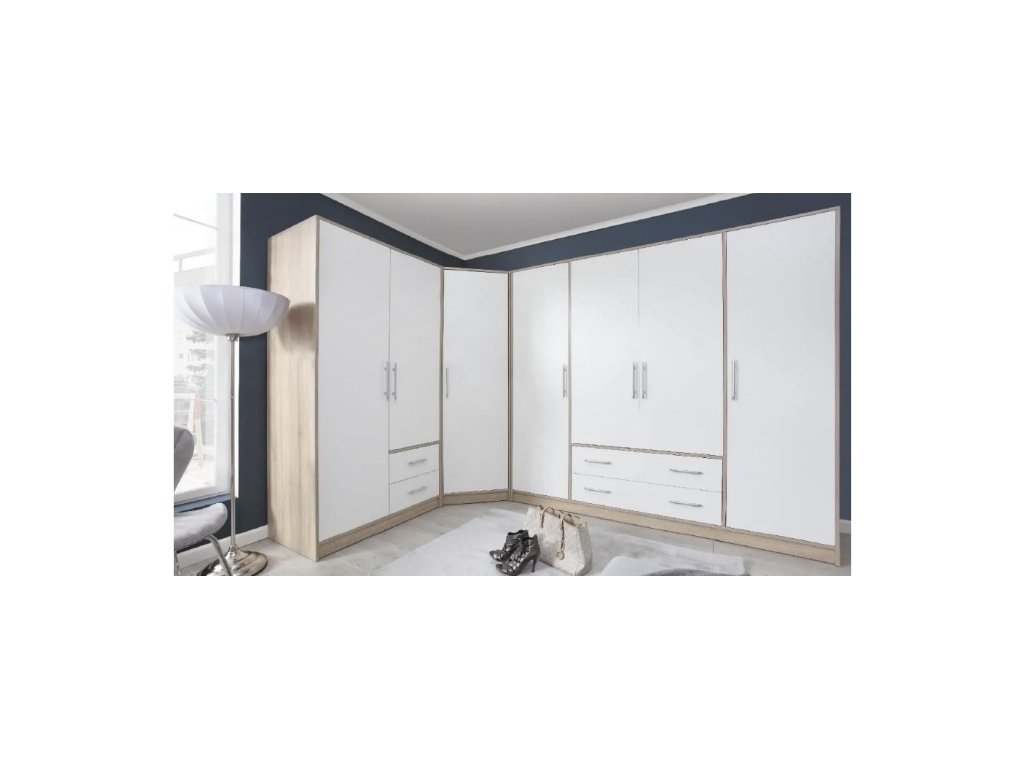 Jednoduchá a zároveň praktická šatní skříň s dostatkem úložného prostoru. S rovnými a čistými liniemi, které vytvoří útulný, pohodový a příjemný interiér. Vnitřní vybavení skříně je vyobrazeno v doplňkových fotografiích. Skříň je také vybavena praktickými zásuvkami, které můžete využít např.na spodní prádlo.
