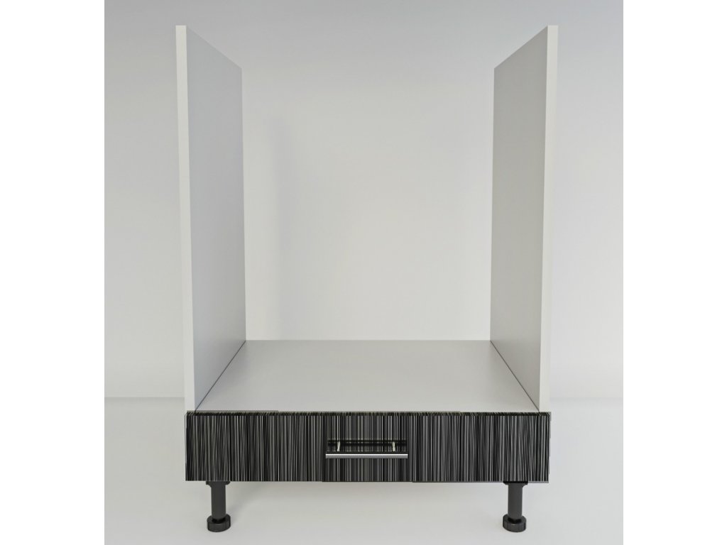 Dolní skříňka na vestavnou troubu vyrobená z kvalitního LTD. Barva korpusu je světle šedé barvy, spodní díl z MDF je v barvě titan černý lesk s dekorem. Rozměry skříňky - šířka 60 cm, výška 82 cm, hloubka 48 cm. Dodáváme v demontovaném stavu.Doplňkové parametry